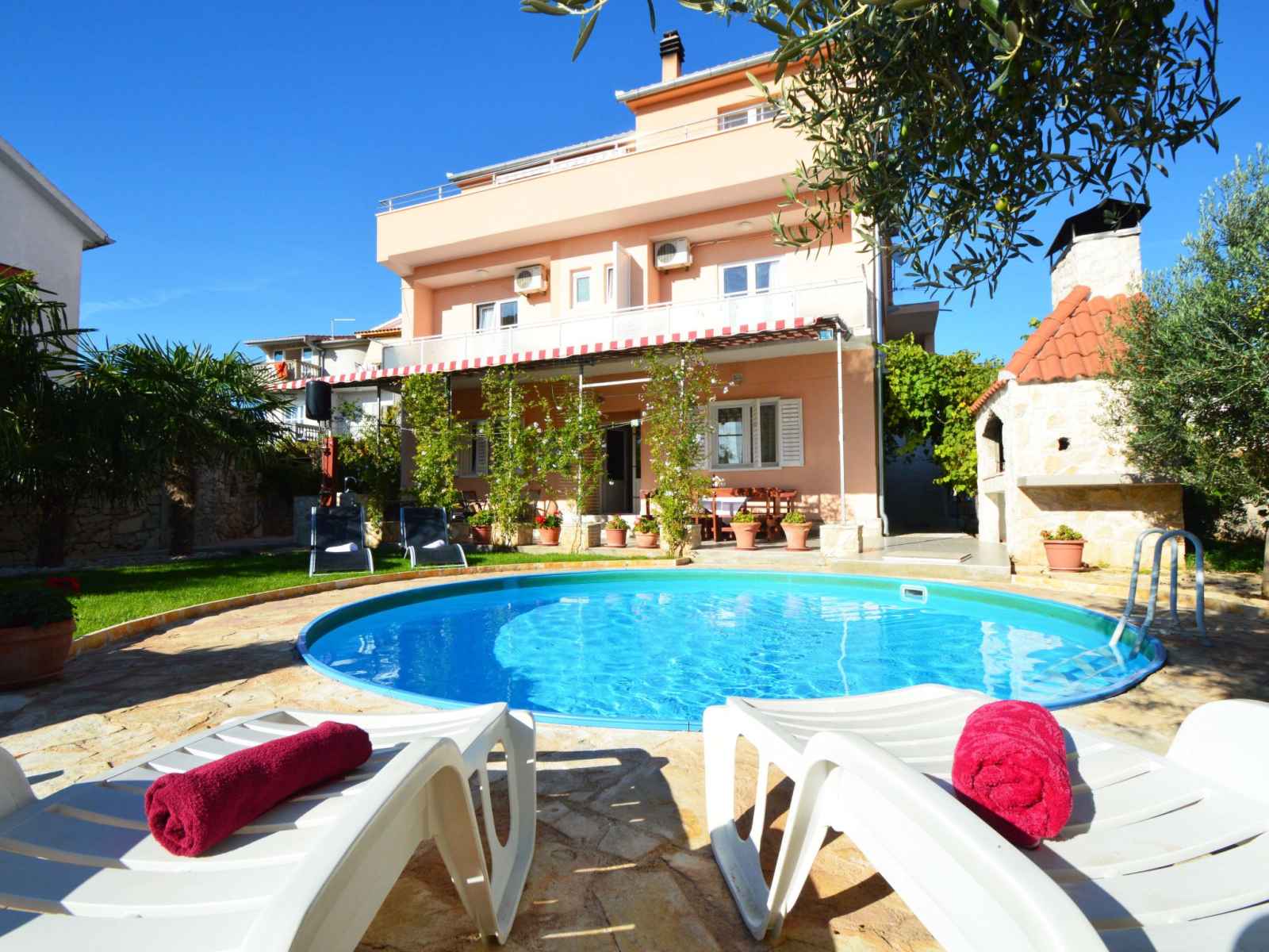 Tribunj à 3 km de vodice: immeuble "ukić". À 300 m du centre de tribunj, situation tranquille, ensoleillée, à 250 m de la mer, à 700 m de la plage. en commun: terrain 400 m2. a usage privé: avec pelouse, piscine (5 m diamètre, profondeur 120 cm, disponibilité saisonnière: 01.mai. - 31.oct.). douche extérieure, meubles de jardin,