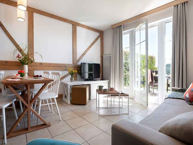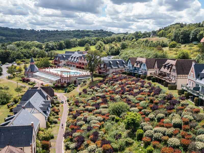 Sur les hauteurs d'houlgate, la résidence et spa permet de se détendre dans un environnement verdoyant. la résidence écologique labellisée " clef verte " arbore une architecture en colombages typique de la normandie. ses appartements et maisons tournées vers la mer offrent des vues splendides sur la côte. la résidence dispose d'une piscine