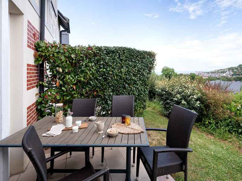 Sur les hauteurs d'houlgate, la résidence et spa permet de se détendre dans un environnement verdoyant. la résidence écologique labellisée " clef verte " arbore une architecture en colombages typique de la normandie. ses appartements et maisons tournées vers la mer offrent des vues splendides sur la côte.