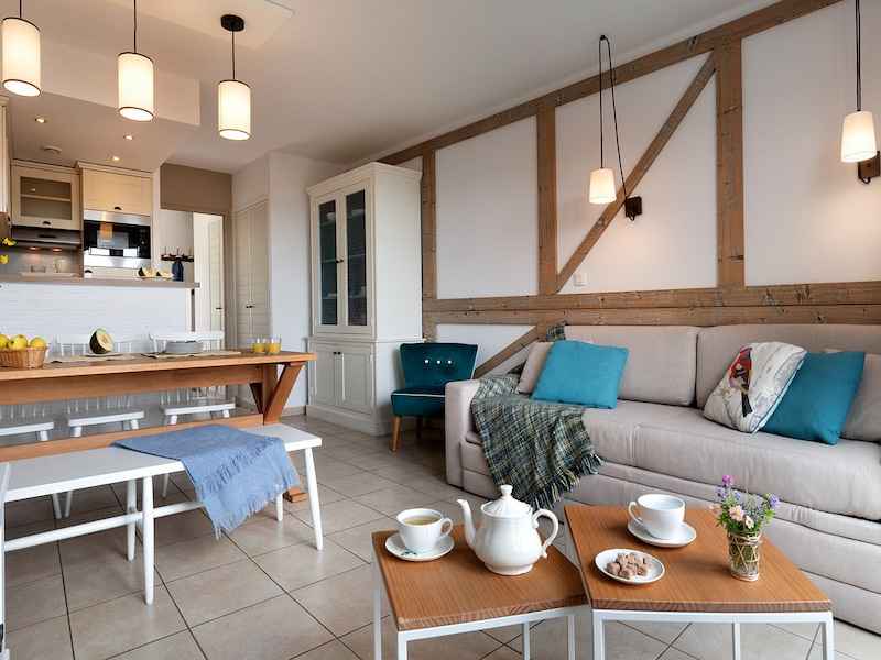 - Equipements (sauf mention contraire ci dessus) : Bouilloire, Machine à café avec filtre, Cuisine équipée, Grille-pain, Lave-vaisselle, Machine Nespresso, Sèche-cheveux, Télévision avec chaînes nationales