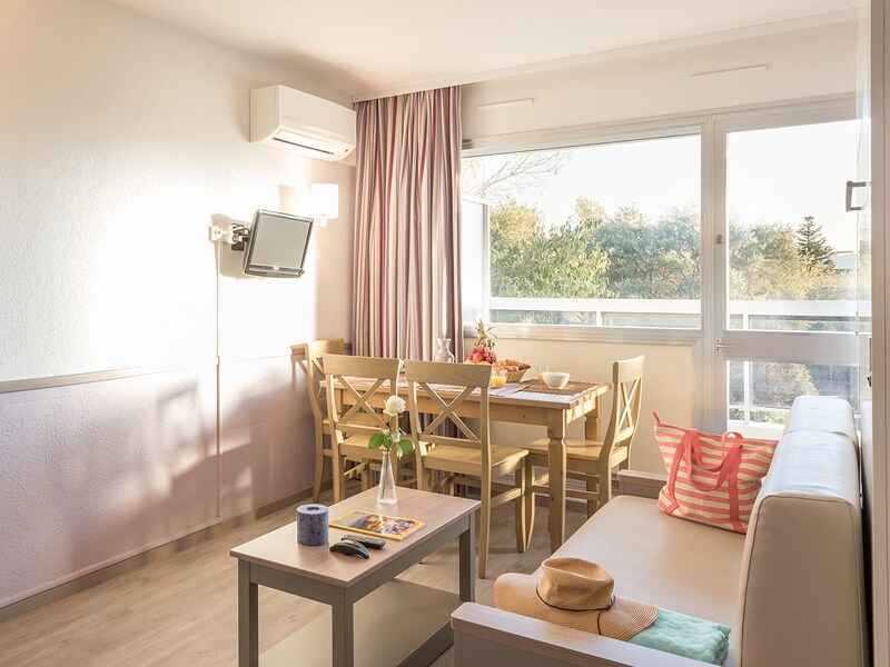 Superbe location, il y a tous les ustensiles de cuisine à disposition. Le personnel de la résidence est super. Seul petit bémol le stationnement, si vous souhaitez visiter les alentours il faut songer à prendre un abonnement au parking du congrès pour le séjour. En effet, les places dans les rues sont très limitées et niveau sécurité il vaut mieux payer le parking.