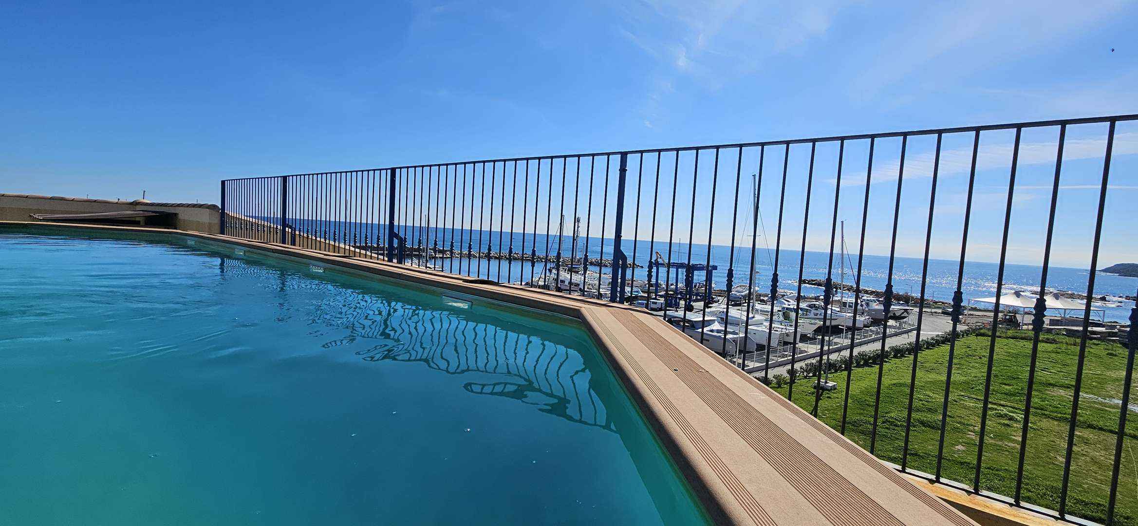Piscine en résidence sur le toit de l'immeuble avec vue panoramique sur le Port de Plaisance et solarium.