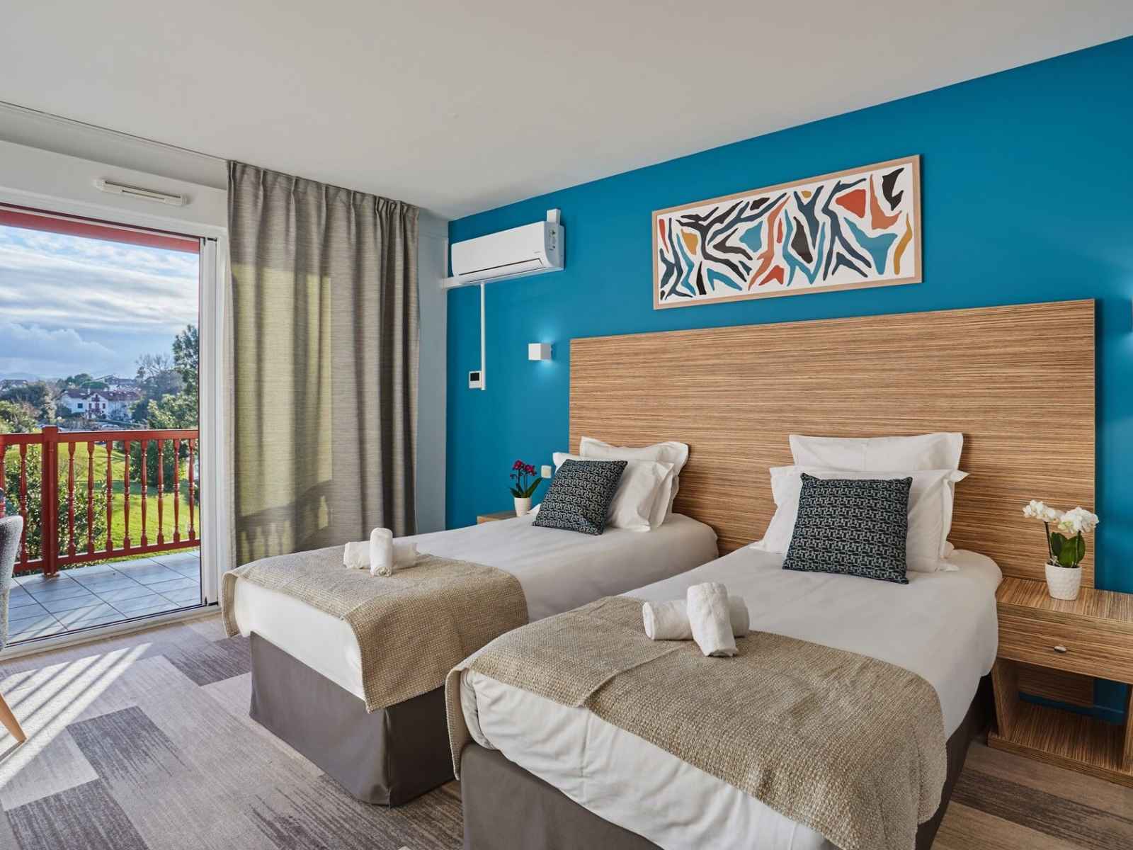 suites confortables, climatisées, offrant pour certaines une vue mer et ouverte sur une terrasse ou un grand balcon. reconnectez-vous à l’essentiel à proximité de l’océan et profitez d’une piscine extérieure chauffée (de mai à fin septembre). sur place, tennis, pelote basque, ping-pong et pétanque.