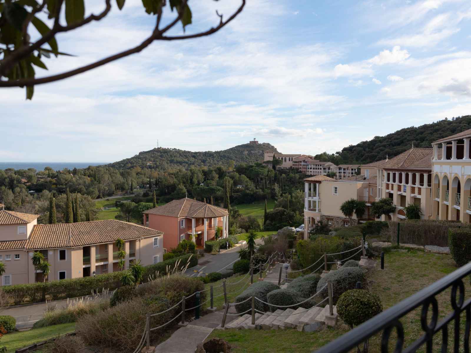 Grand complexe de vacances "village cap estérel - l'esquinade", année de construction 1990. en bordure de la localité, à 2 km du centre d'agay, sur un versant, dans un quartier résidentiel, à 900 m de la mer, à 900 m de la plage, route à traverser, en bordure du terrain de golf, dans une zone piétonne. en commun: parc 210 ha, 5 piscines
