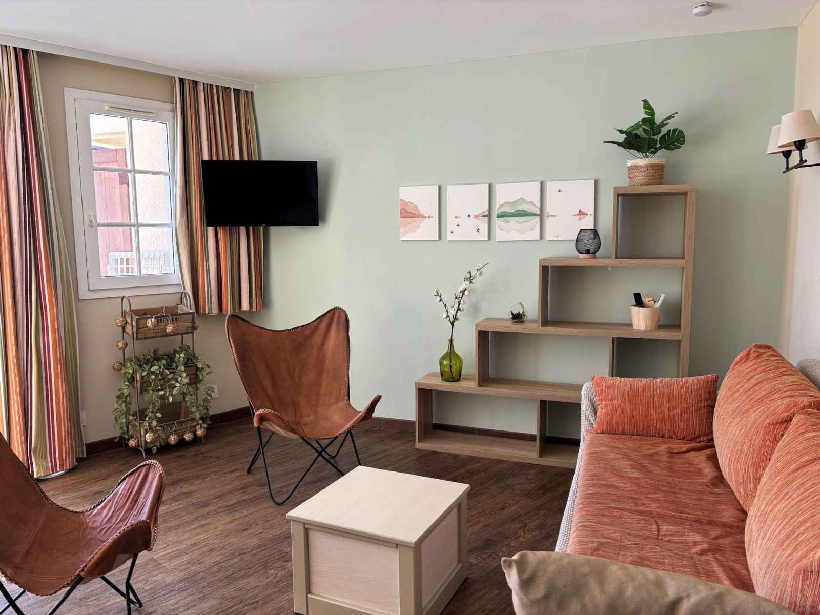 "l'esquinade j3 029", apt 2 pièces 30 m2. logement idéal pour 2 adultes + 2 enfants. partiellement rénové en 2024, aménagement de bon goût: séjour avec 1 divan-lit (140 cm, longueur 190 cm), tv (écran plat). sortie sur la terrasse. 1 chambre orientée sud avec 1 grand-lit (1 x 160 cm, longueur 190 cm). coin cuisine (mini-four, four,