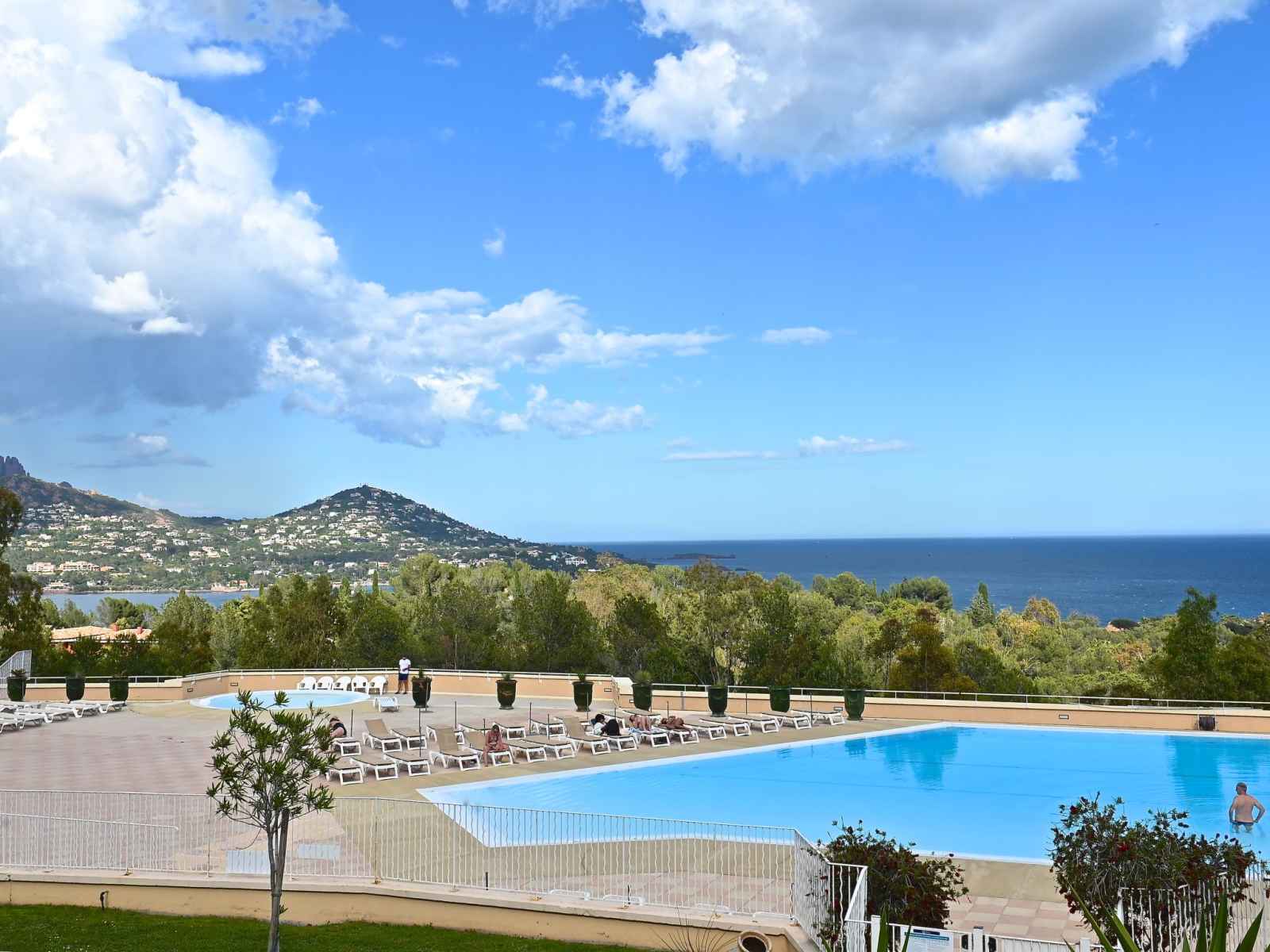 Grand complexe de vacances "village cap estérel - le belvédère". en bordure de la localité, à 2 km du centre d'agay, sur un versant, dans un quartier résidentiel, à 400 m de la mer, à 350 m de la plage, route à traverser, en bordure du terrain de golf, dans une zone piétonne. en commun: parc 210 ha, 5 piscines (disponibilité