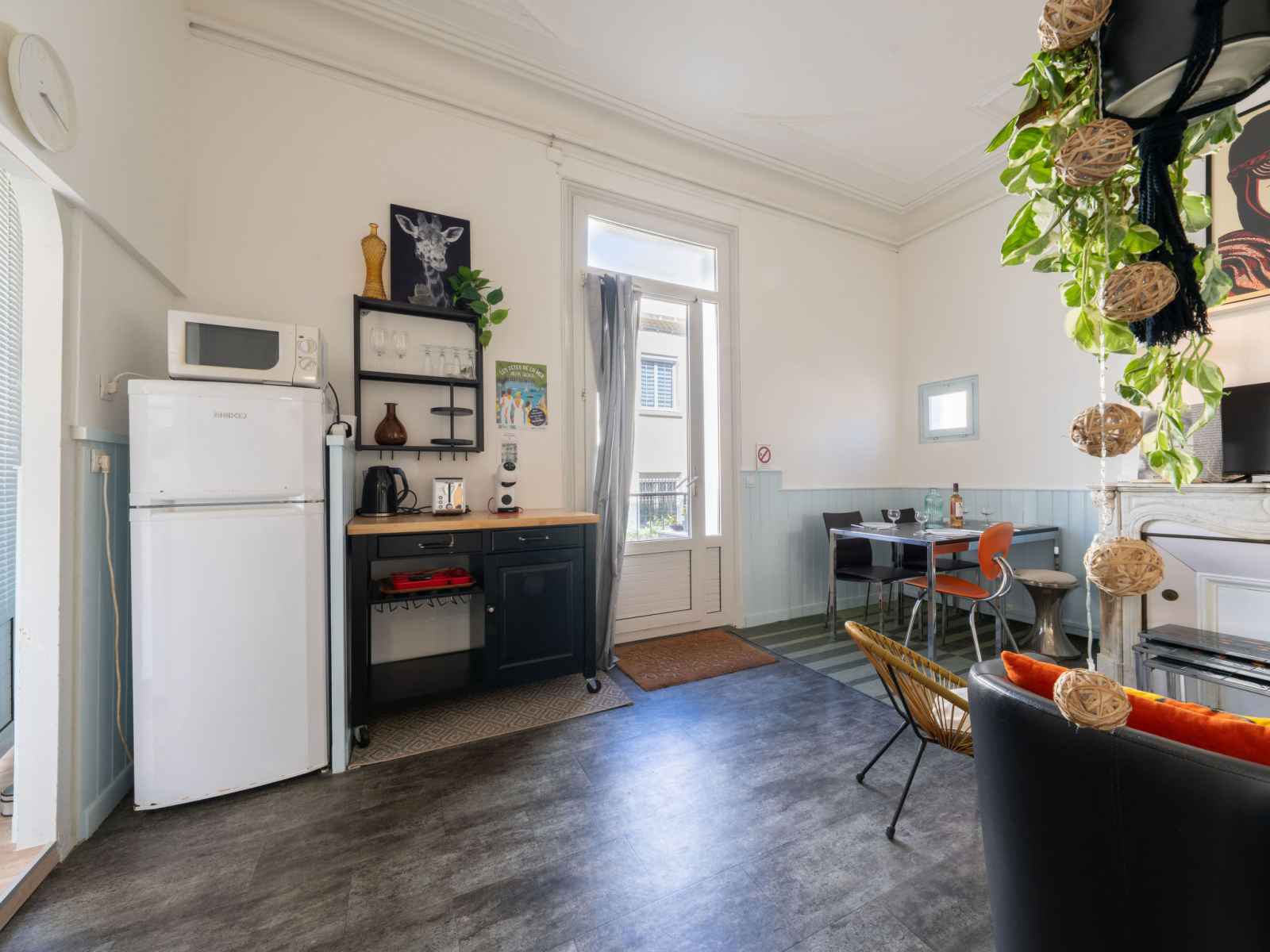 Apt 2 pièces 28 m2 au 1er étage. logement idéal pour 2 adultes + 2 enfants. aménagement confortable et agréable: séjour/salle à manger avec 1 divan-lit double (1 x 140 cm, longueur 190 cm), tv (écran plat). sortie sur la terrasse. coin cuisine (four, 2 plaques à induction, grille-pain, bouilloire électrique, micro-ondes, congélateur,