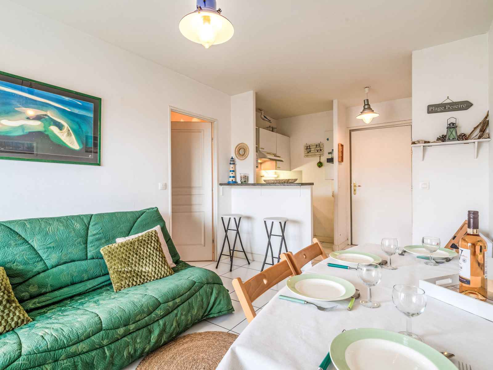 Apt 2 pièces 34 m2 au 2ème étage. logement idéal pour 2 adultes + 2 enfants. aménagement confortable: séjour/salle à manger avec 1 divan-lit (130 cm, longueur 190 cm), tv (écran plat). sortie sur le balcon. 1 chambre avec 1 divan-lit (130 cm, longueur 190 cm), 1 x 1 lits superposés (90 cm, longueur 190 cm). cuisine ouverte (2 plaques de