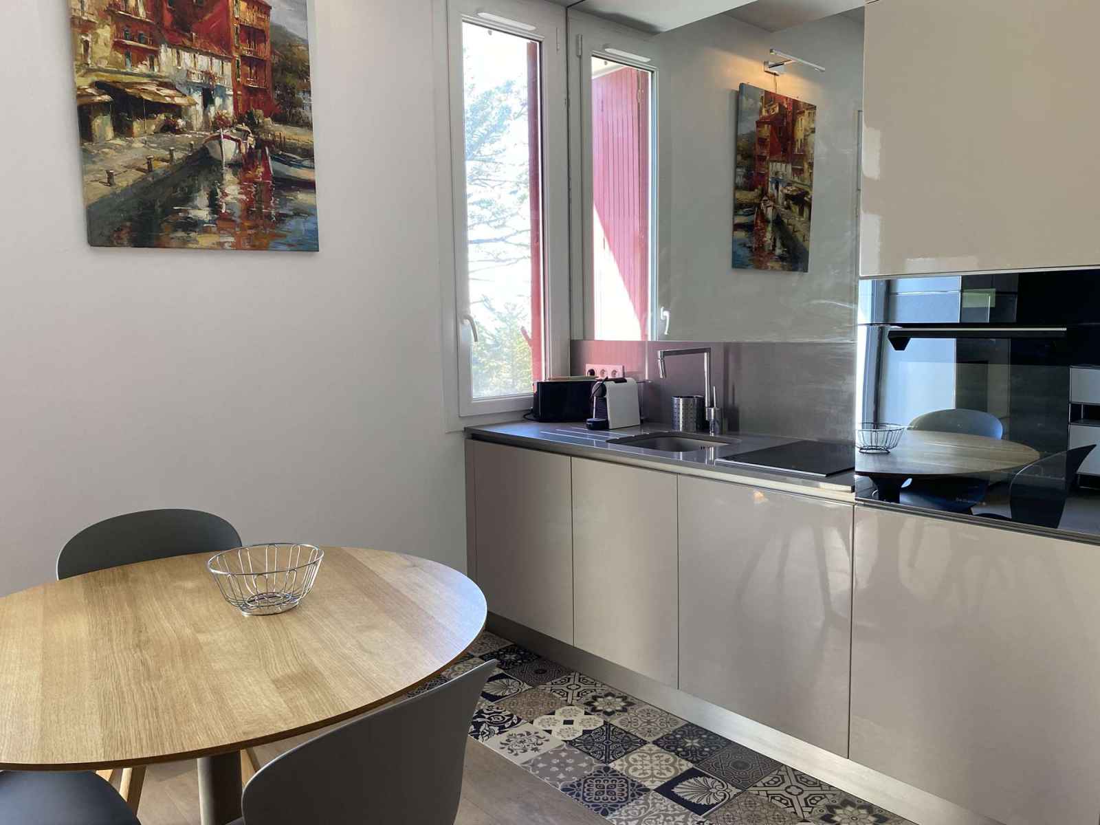 • Equipements : 1 climatisation réversible, ASPIRATEUR, Cafetière NESPRESSO, Douche à l'italienne, Étendoir, Four, Grille pain, lave-linge séchant, lit queen size, Micro-ondes, placards, Plaque induction 2 feux, réfrigérateur - congélateur, sèche-cheveux, Sèche-serviettes, Téléviseur