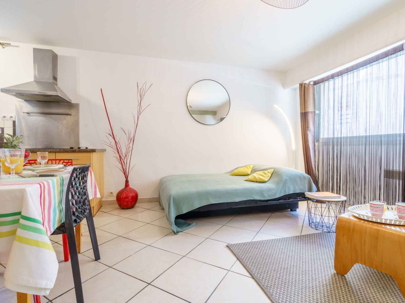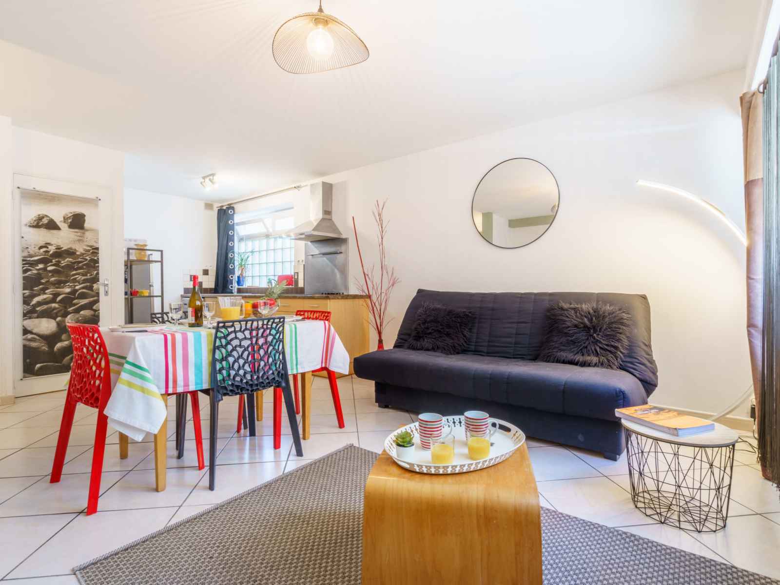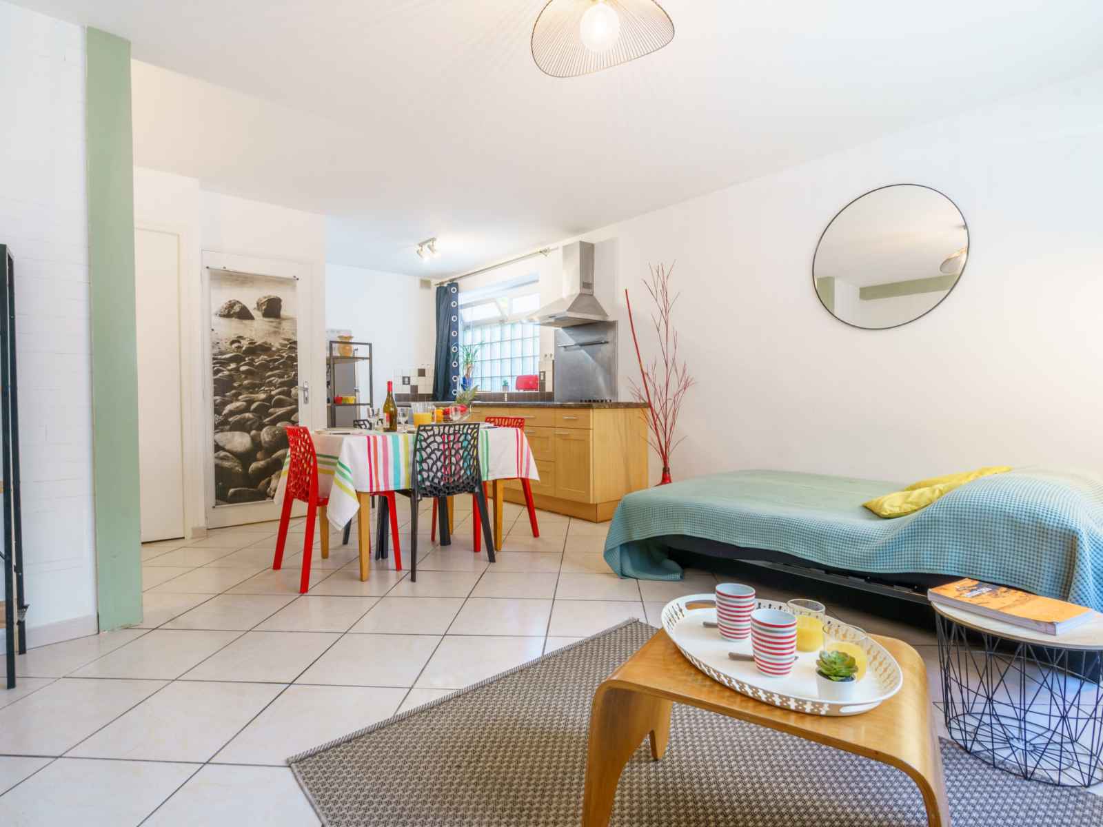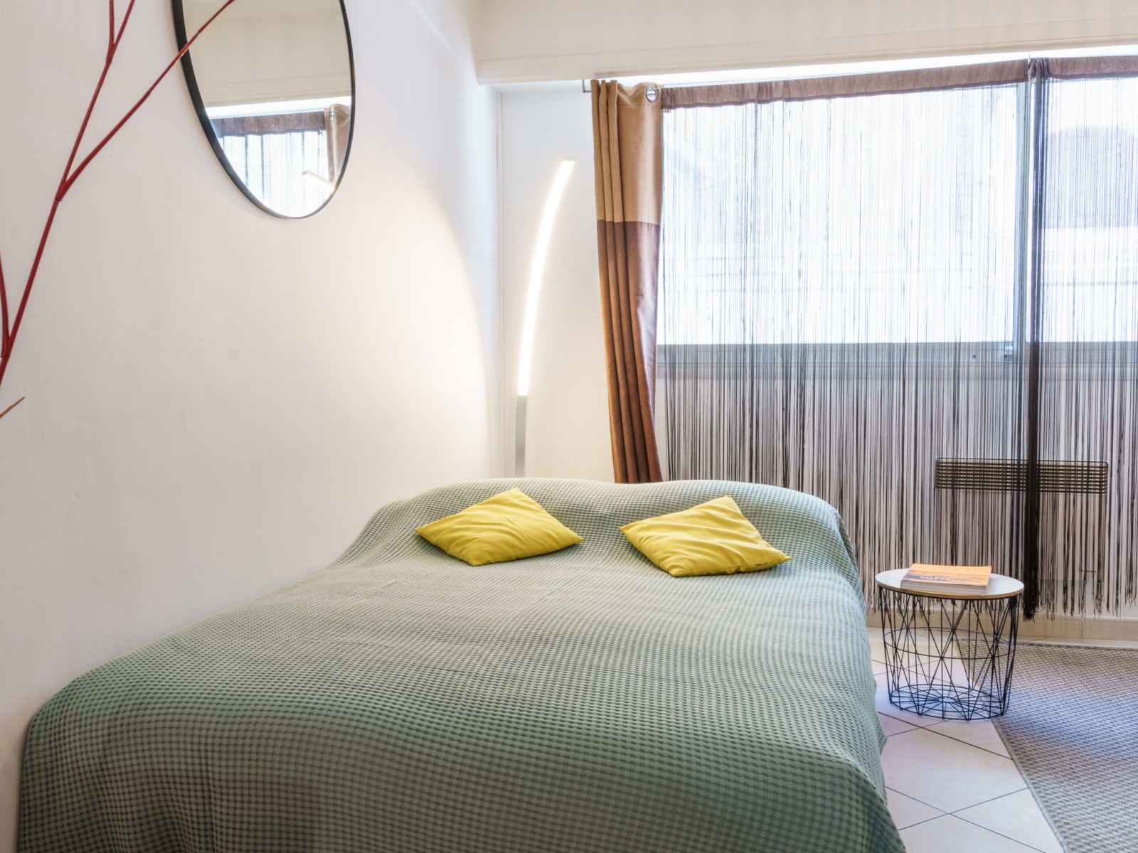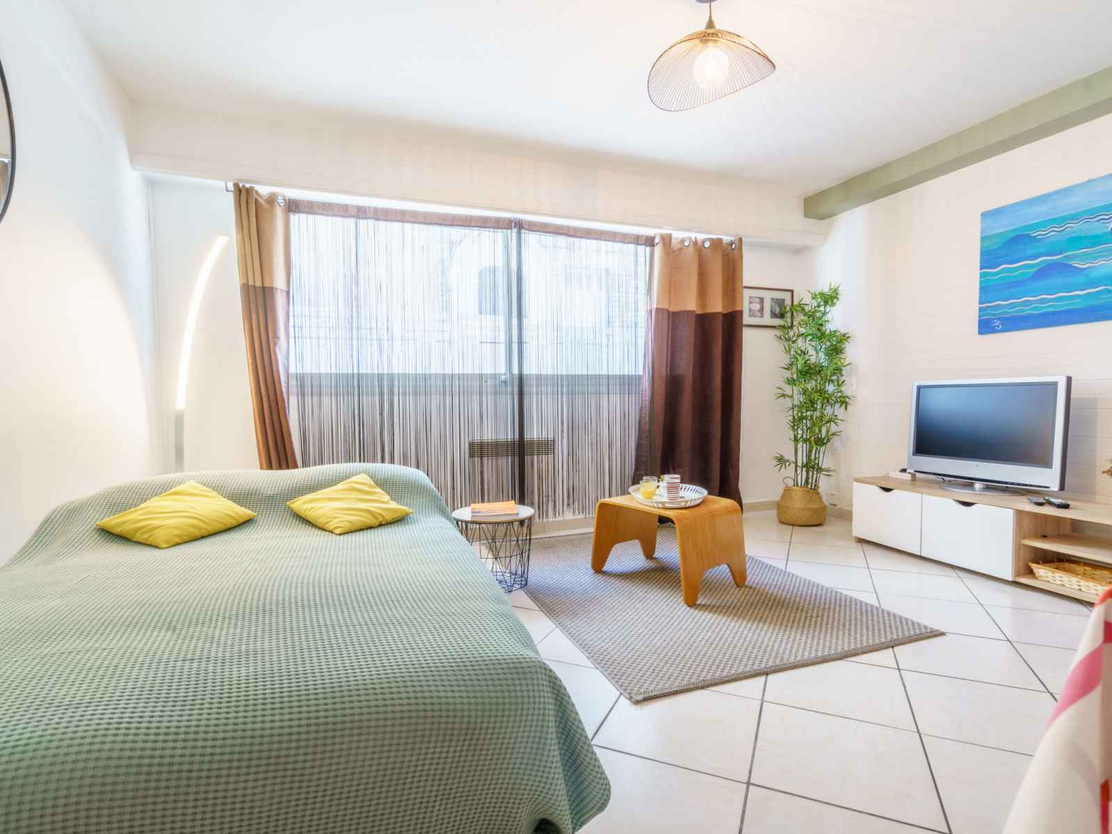 Apt 2 pièces 46 m2, au rez-de-chaussée. aménagement agréable: séjour/salle à manger avec 1 divan-lit double (140 cm, longueur 190 cm), tv (écran plat). 1 chambre avec 1 grand-lit (140 cm, longueur 190 cm). cuisine ouverte (4 plaques vitrocéramiques, grille-pain, bouilloire électrique, micro-ondes, congélateur, cafetière électrique,