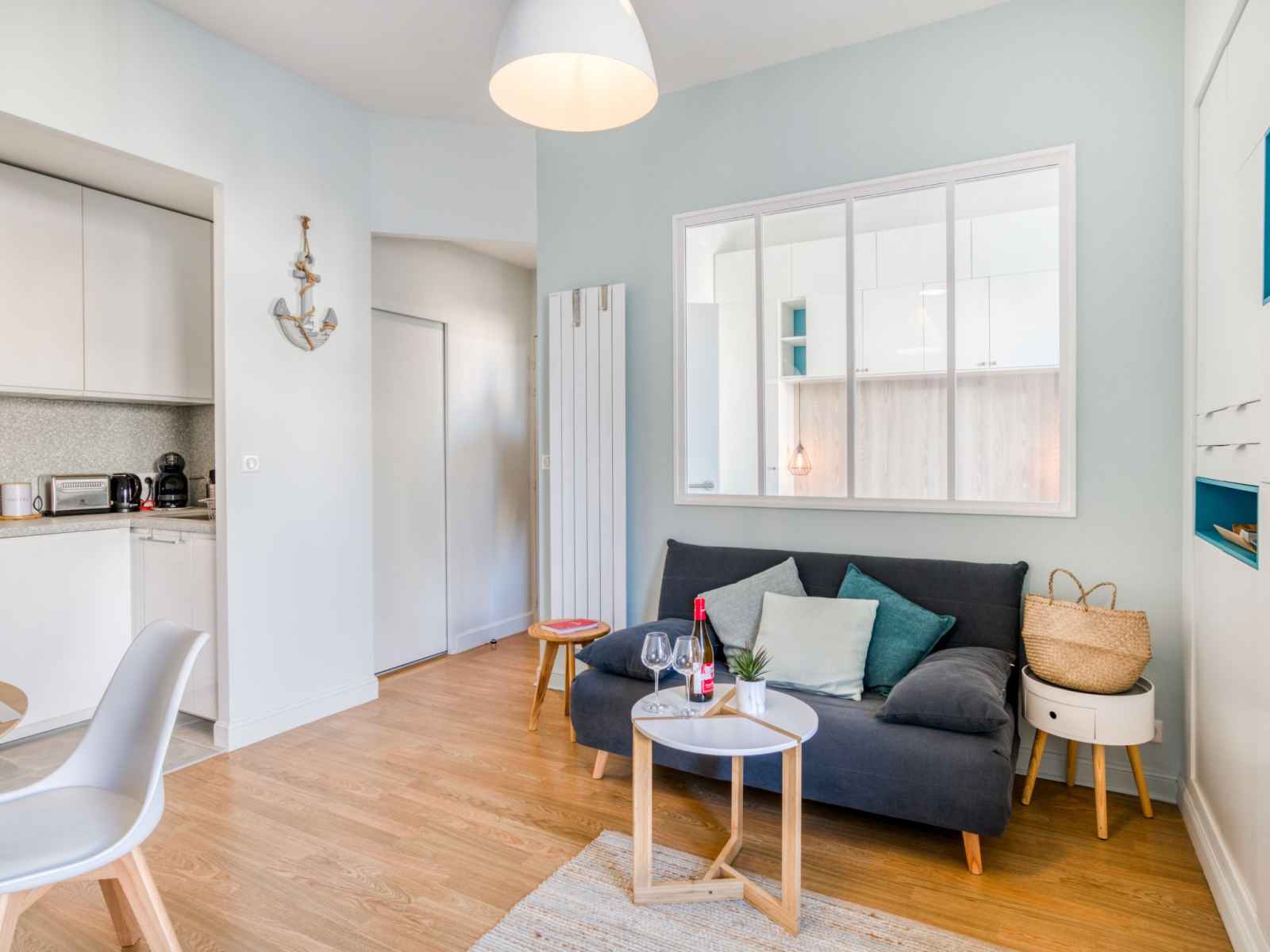 Apt 2 pièces 35 m2 au 1er étage. logement idéal pour 2 adultes + 1 enfant. aménagement agréable et moderne: séjour/salle à manger avec 1 divan-lit (120 cm, longueur 190 cm), tv (écran plat). 1 chambre avec 1 grand-lit (140 cm, longueur 190 cm). cuisine ouverte (4 plaques vitrocéramiques, grille-pain, bouilloire électrique, cafetière