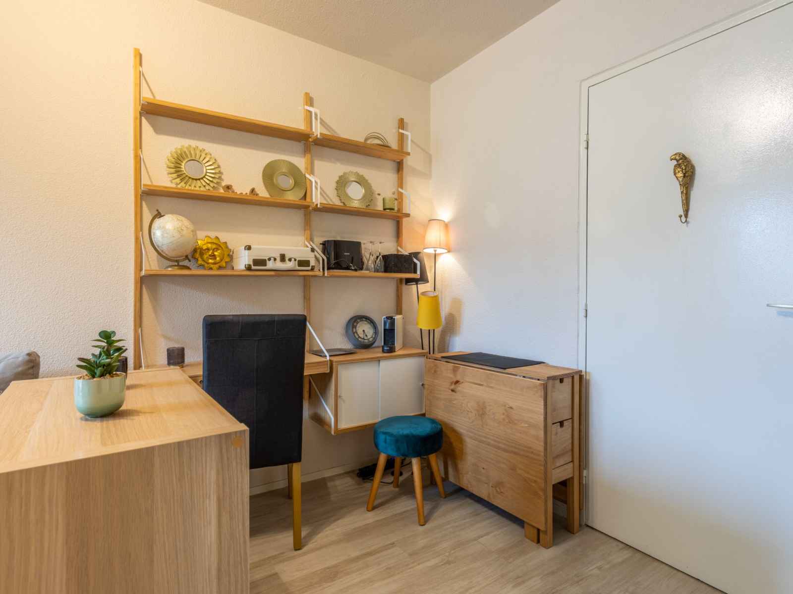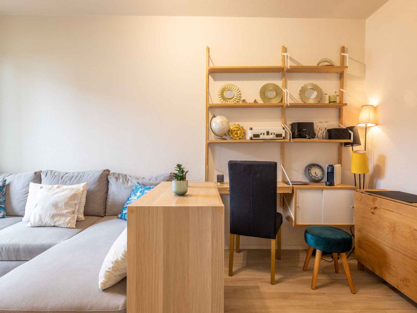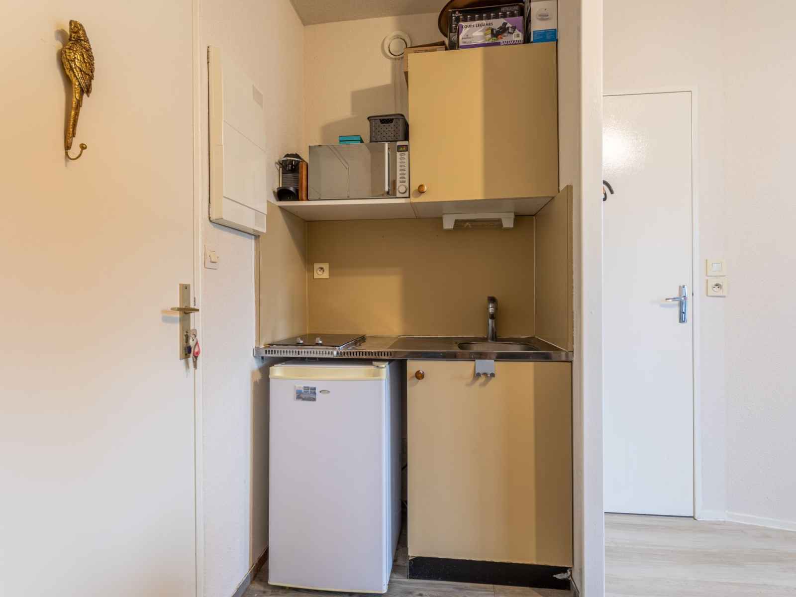 Apt 2 pièces 21 m2 au 1er étage, situation est. séjour/salle à manger avec tv (écran plat). sortie sur le balcon. 1 chambre avec 1 grand-lit (1 x 140 cm, longueur 190 cm). coin cuisine (2 plaques de cuisson, grille-pain, micro-ondes, cafetière électrique, capsules pour machine à café (krups) (non incluses)). douche/wc. chauffage