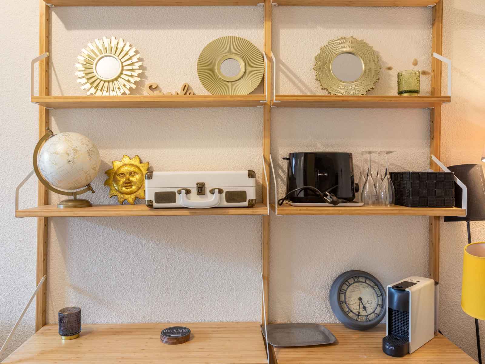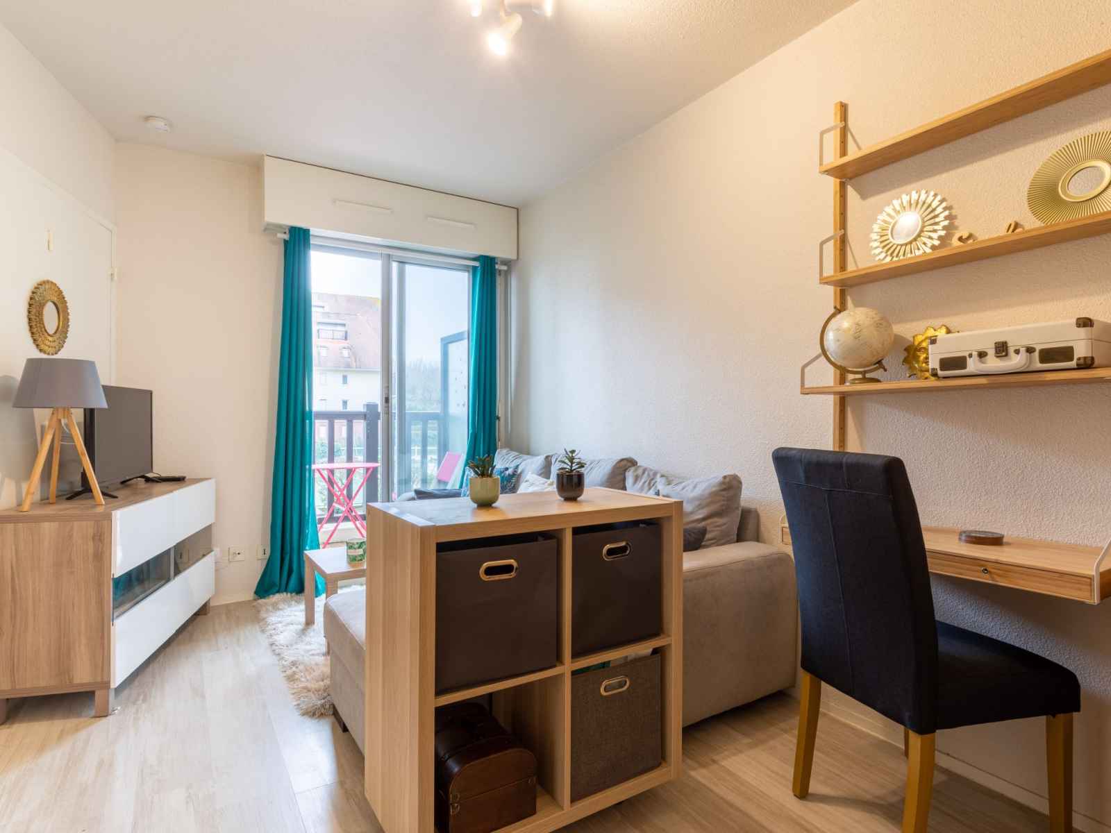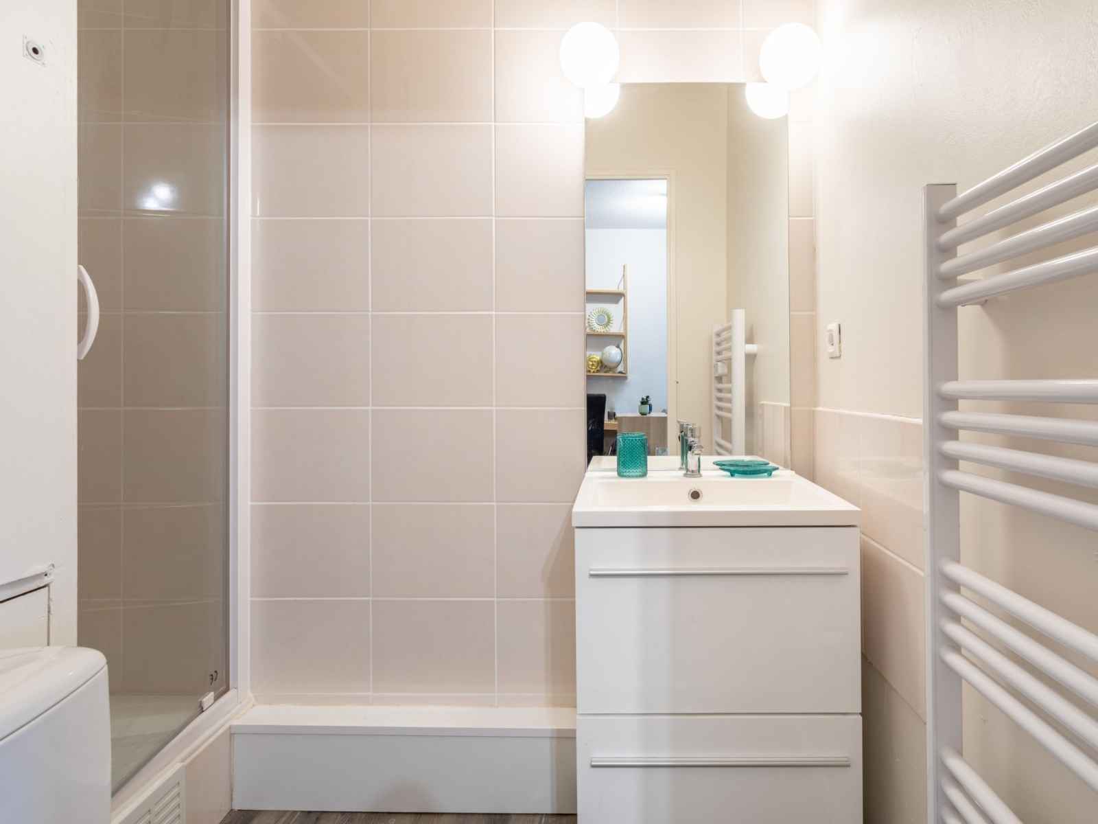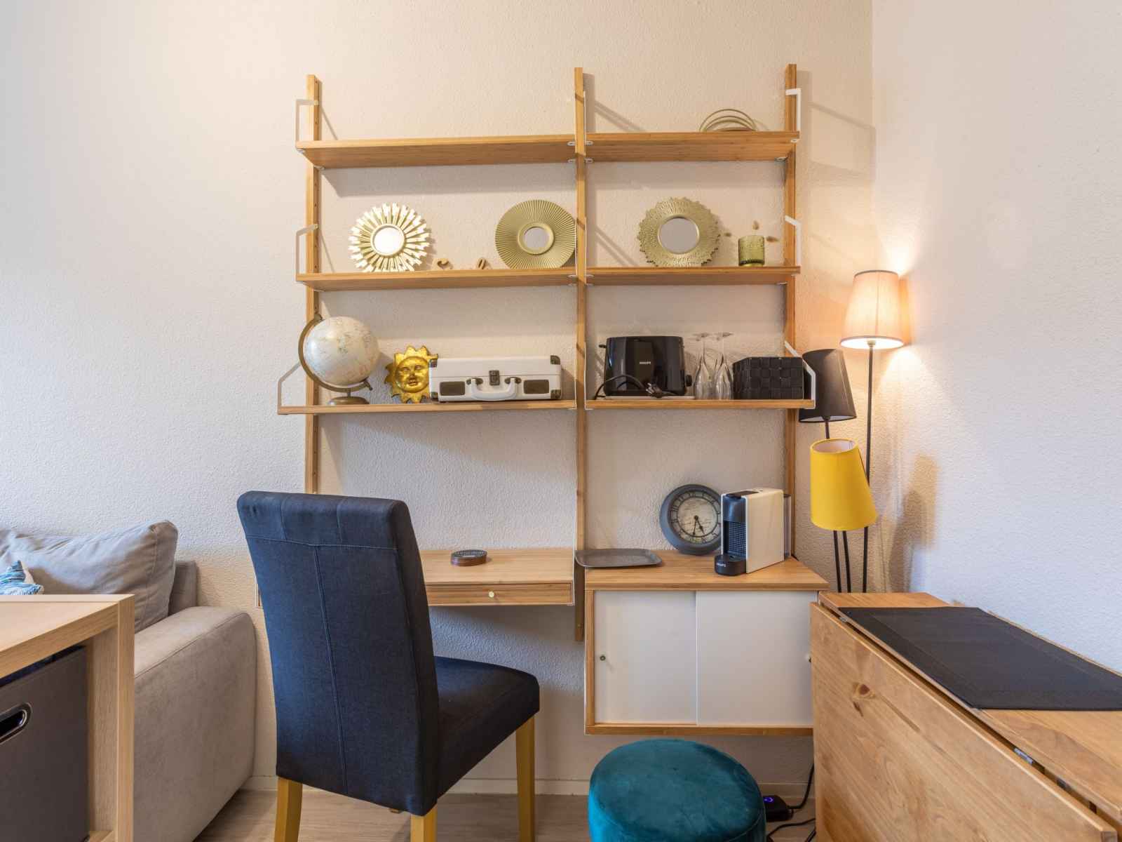 Apt 2 pièces 21 m2 au 1er étage, situation est. séjour/salle à manger avec tv (écran plat). sortie sur le balcon. 1 chambre avec 1 grand-lit (1 x 140 cm, longueur 190 cm). coin cuisine (2 plaques de cuisson, grille-pain, micro-ondes, cafetière électrique, capsules pour machine à café (krups) (non incluses)). douche/wc. chauffage