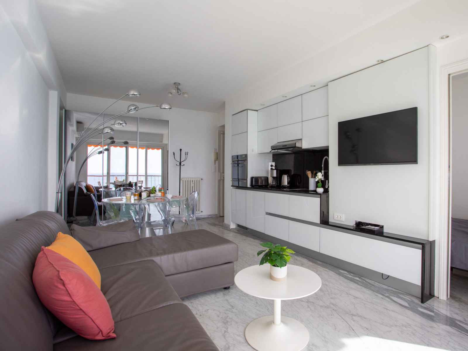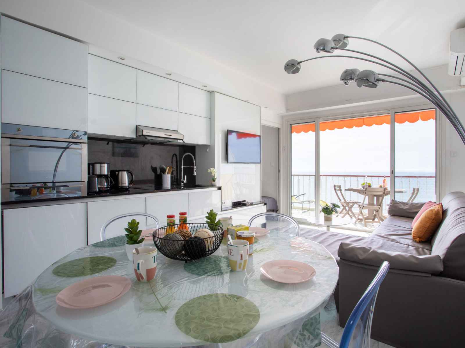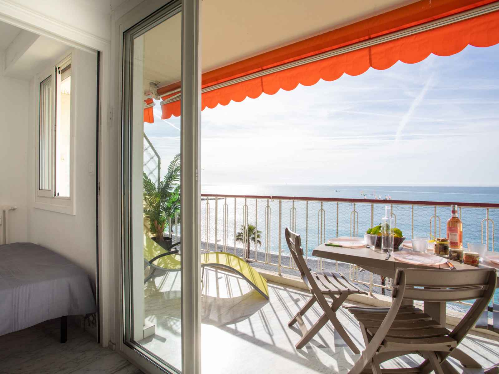 Apt 2 pièces 32 m2 au 5ème étage. clair, aménagement confortable et moderne: séjour/salle à manger avec baie vitrée avec 1 divan-lit double (140 cm, longueur 190 cm), tv, écran plat et air-conditionné. sortie sur la terrasse. alcôve avec 1 grand-lit (140 cm, longueur 190 cm). cuisine ouverte (four, lave-vaisselle, 2 plaques à induction,