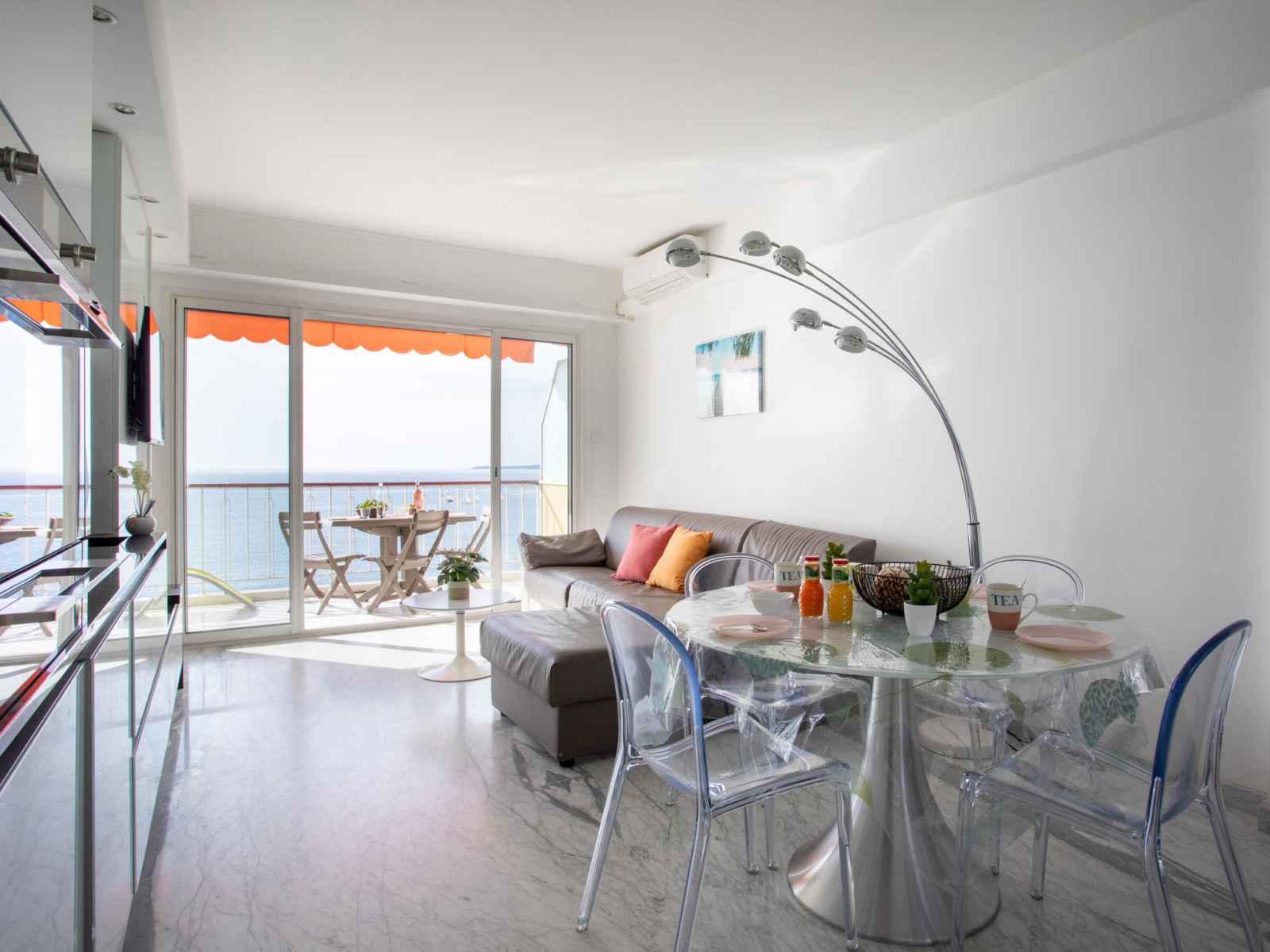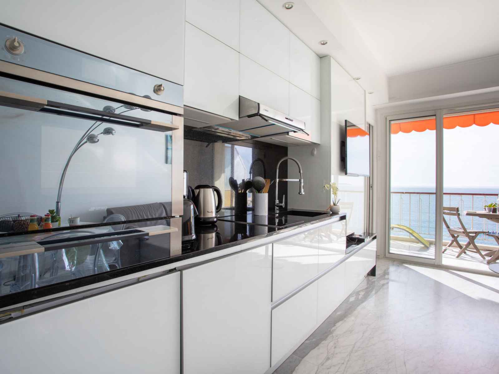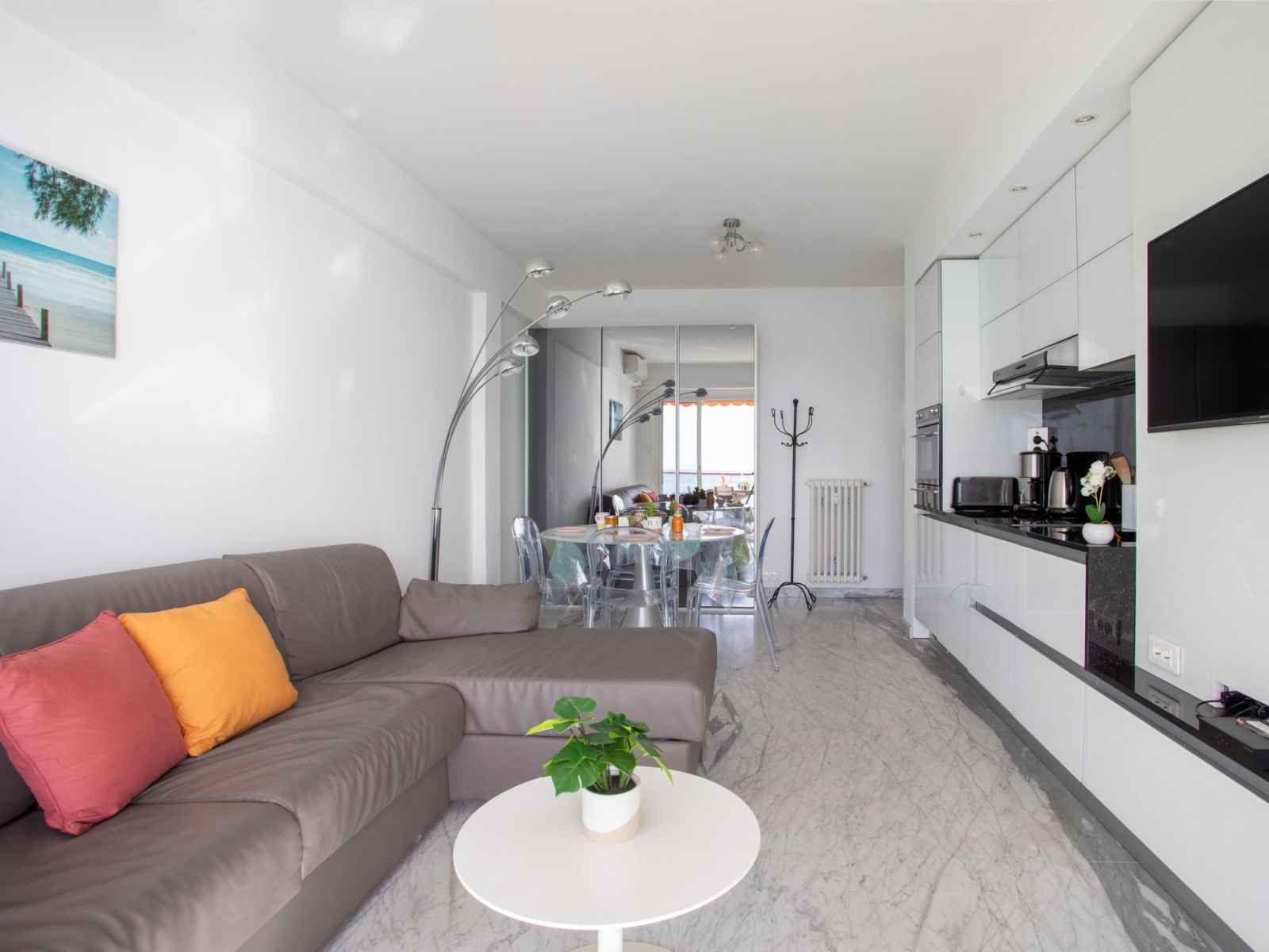 Apt 2 pièces 32 m2 au 5ème étage. clair, aménagement confortable et moderne: séjour/salle à manger avec baie vitrée avec 1 divan-lit double (140 cm, longueur 190 cm), tv, écran plat et air-conditionné. sortie sur la terrasse. alcôve avec 1 grand-lit (140 cm, longueur 190 cm). cuisine ouverte (four, lave-vaisselle, 2 plaques à induction,