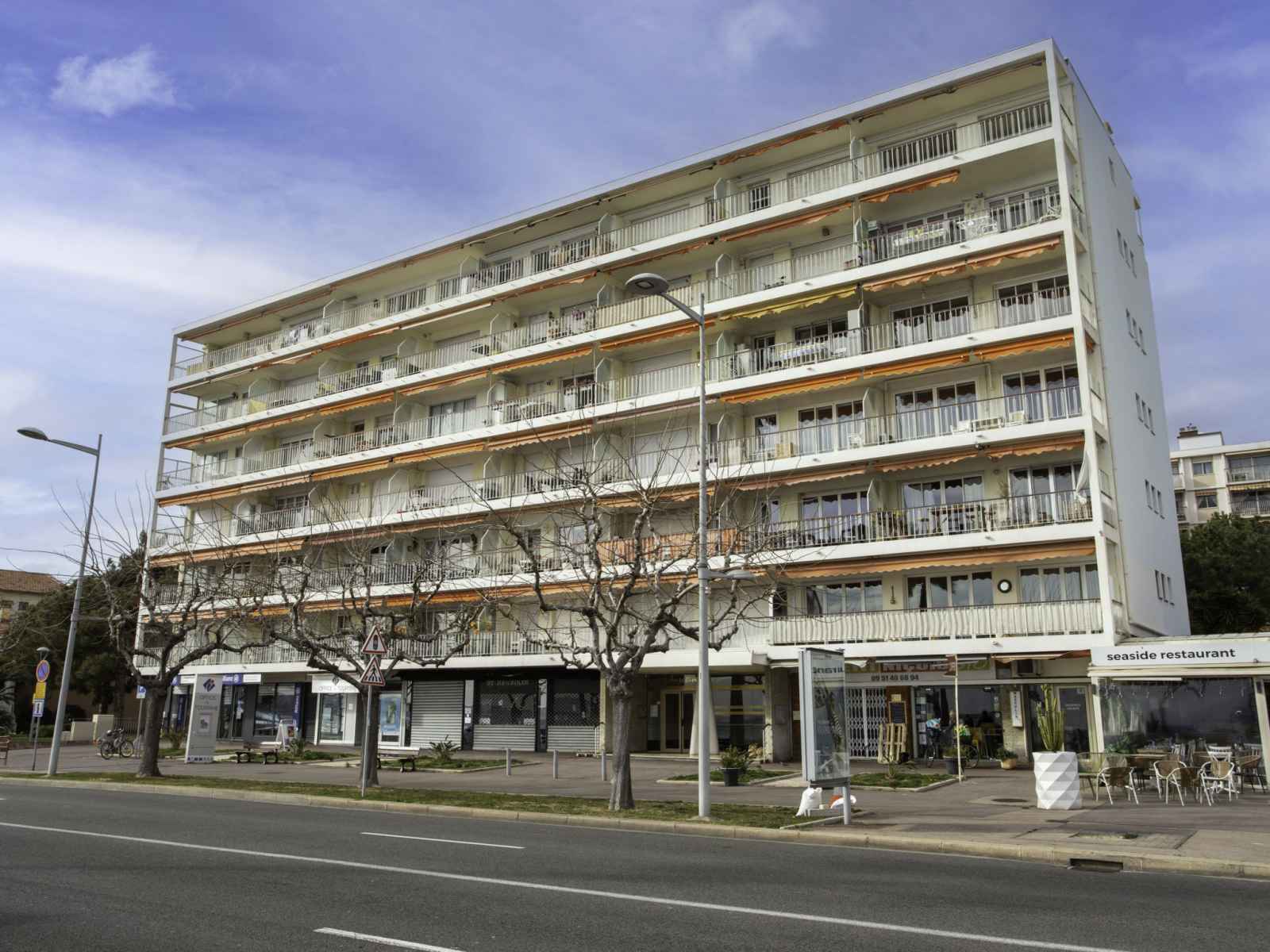 Résidence "l'angelina", de 7 étages. au centre de cros de cagnes, situation ensoleillée, à 20 m de la mer, à 20 m de la plage, route à traverser. infrastructures de la résidence: ascenseur. magasins 200 m, magasin d'alimentation 50 m, supermarché 300 m, centre commercial 2.3 km, restaurant, boulangerie 170 m, arrêt de bus "les tritons"