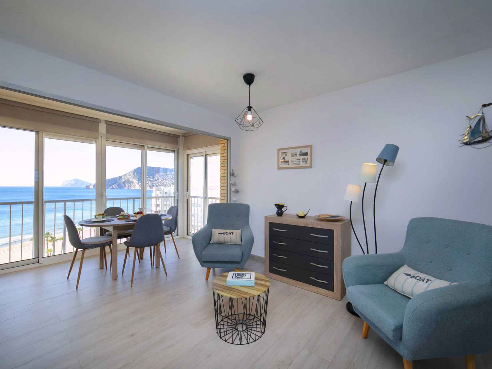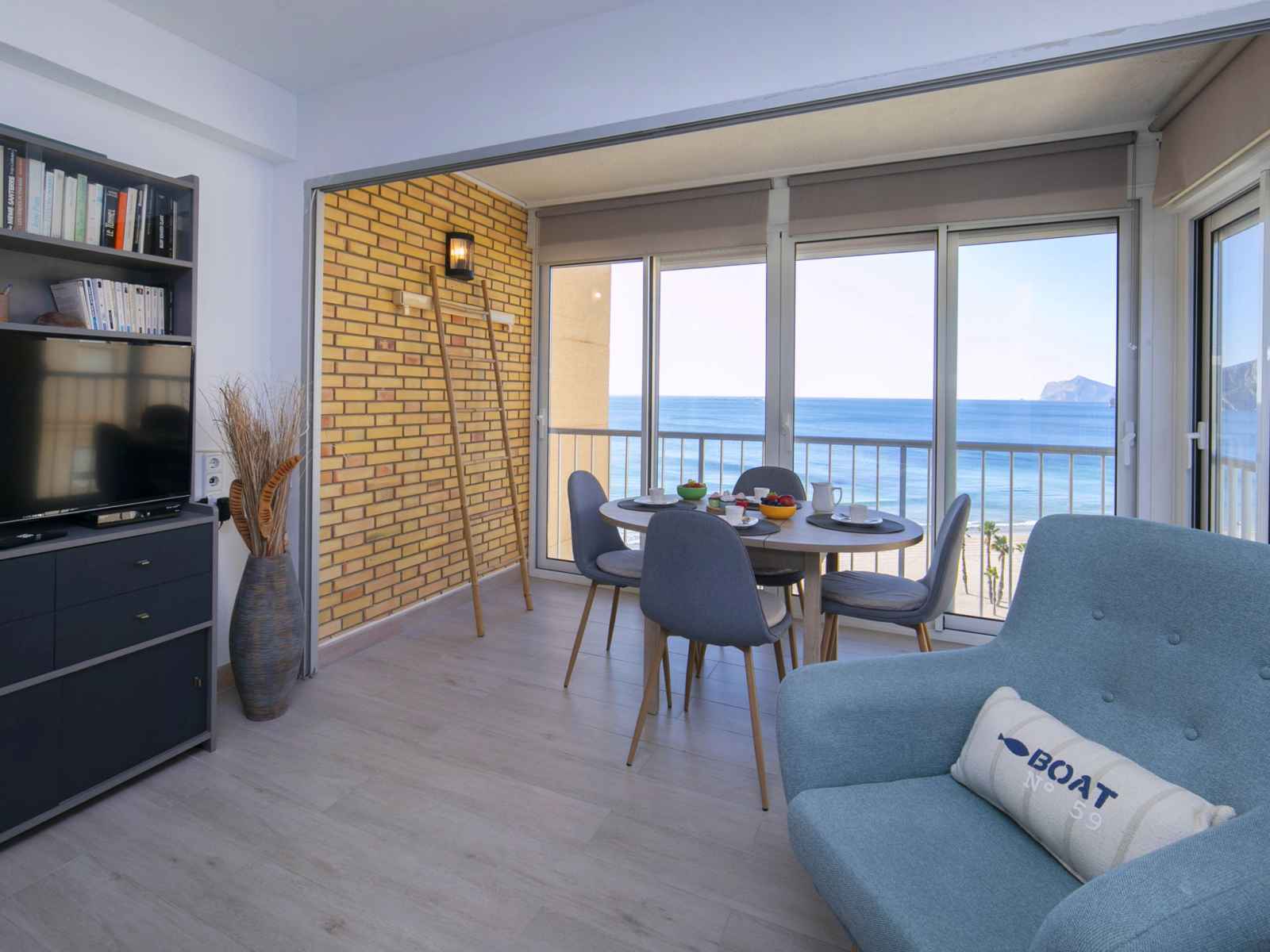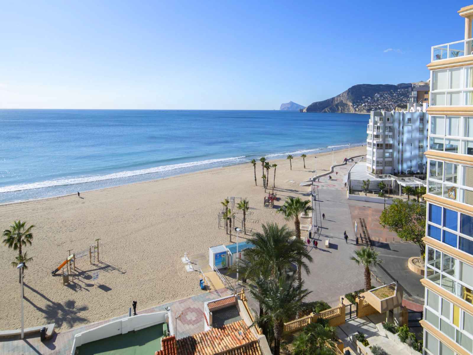 "penon d'ifach", apt 2 pièces 62 m2 au 8ème étage. spacieux et clair, aménagement confortable et agréable: séjour/salle à manger avec 1 divan-lit, tv (satellite) et ventilateur. 1 chambre avec dressing avec 2 lits (90 cm, longueur 200 cm), ventilateur. cuisine ouverte (four, lave-vaisselle, 3 plaques vitrocéramiques, micro-ondes,
