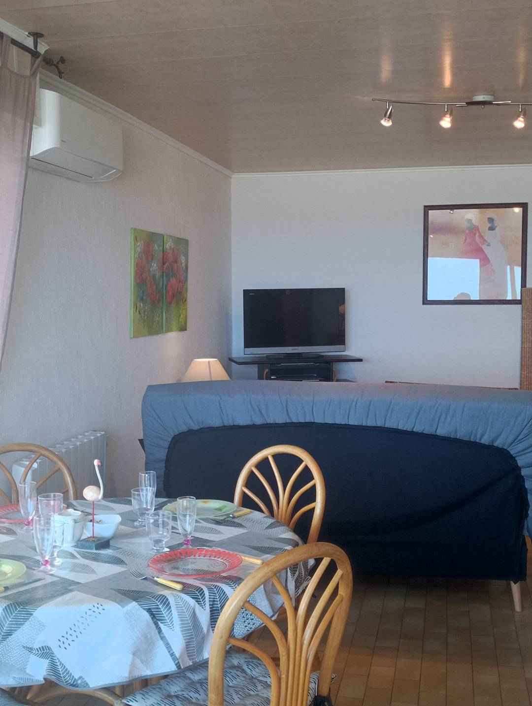 • Equipements : 1 canapé-CLIC CLAC, accès direct plage, Ascenseur, Aspirateur, bouilloire electrique, Cafetière filtres, Climatisation, Douche, elements de cuisine, Entrée privé, Etendoir, Fer à repasser, Lave linge, Lit double 140, loggia vue Mer, Micro-onde, Plaque de cuisson, Refrigerateur congel, Téléviseur, WC séparé