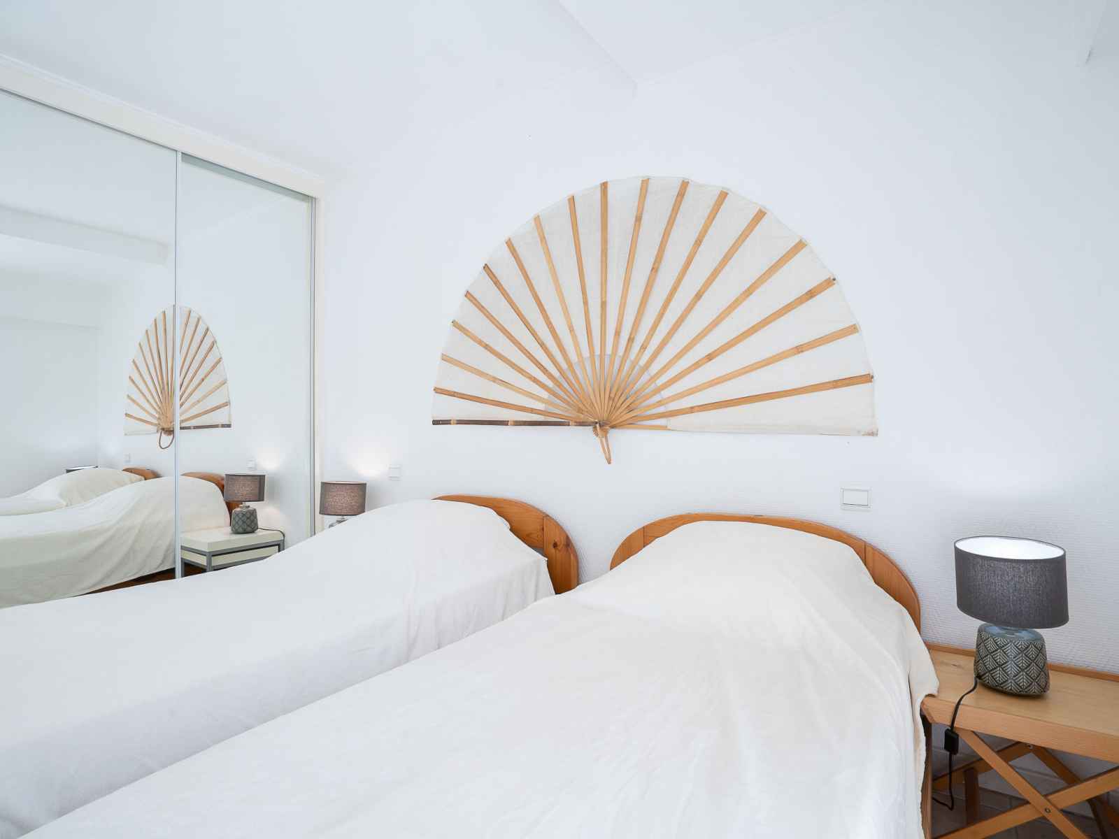 Apt 2 pièces 42 m2, au rez-de-chaussée, situation ouest. aménagement confortable et agréable: séjour/salle à manger avec 1 divan-lit double (1 x 140 cm, longueur 190 cm), tv et air-conditionné. sortie sur la terrasse. 1 chambre avec 2 lits et air-conditionné. sortie sur la terrasse. cuisine (4 plaques de cuisson, four, lave-vaisselle,