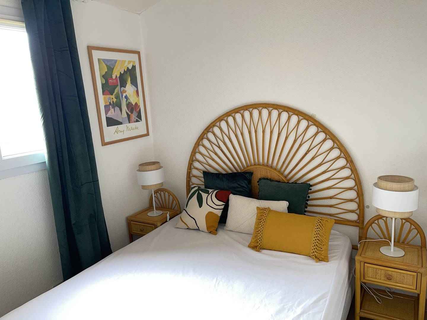 1 chambre avec 1 lit 140 et placard, 1 salle d'eau avec douche, lavabo et wc séparés avec lave-linge. Terrasse avec mobilier de jardin. Parking numéroté.