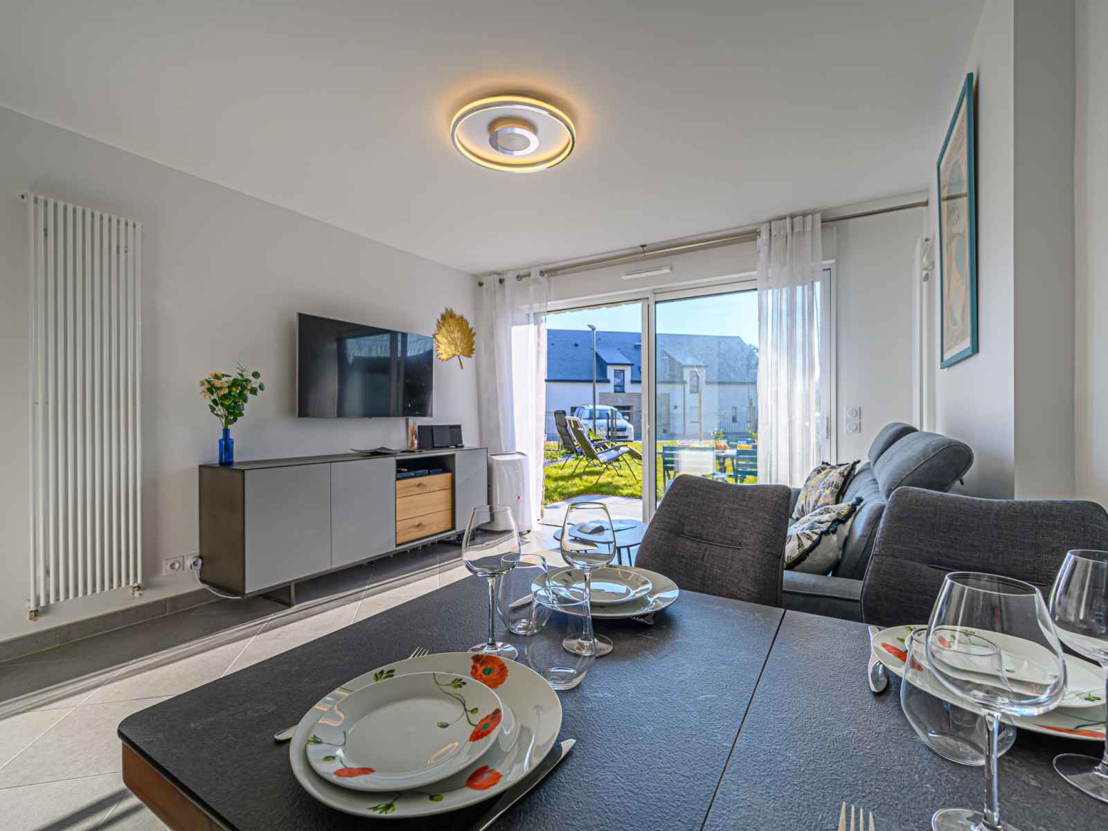 Petite résidence moderne "les villas du men du", de 2 étages, année de construction 2022. dans la localité, à 300 m de la mer, à, de la plage. infrastructures de la maison: réduit pour bicyclettes. supermarché 200 m, restaurant 500 m, bar, boulangerie 1 km, café, location de bicyclettes 1 km, plage de sable "plage du men du" 300 m, centre