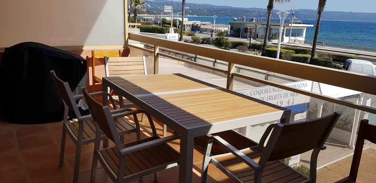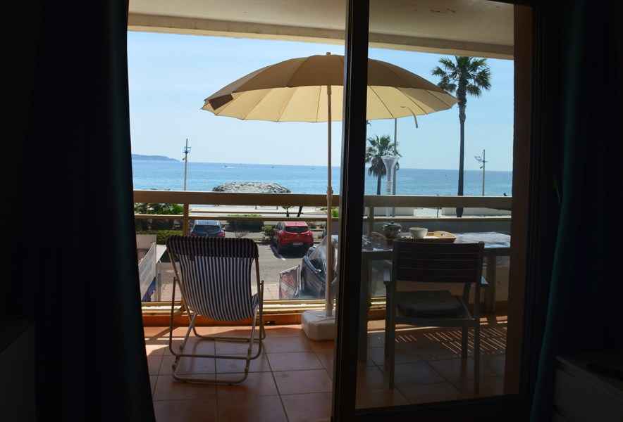 Bel appartement 2 pièces climatisé 30m2, 1° étage, terrasse, face plage, vue mer, 50m plage, exposition sud, parking privé. wifi