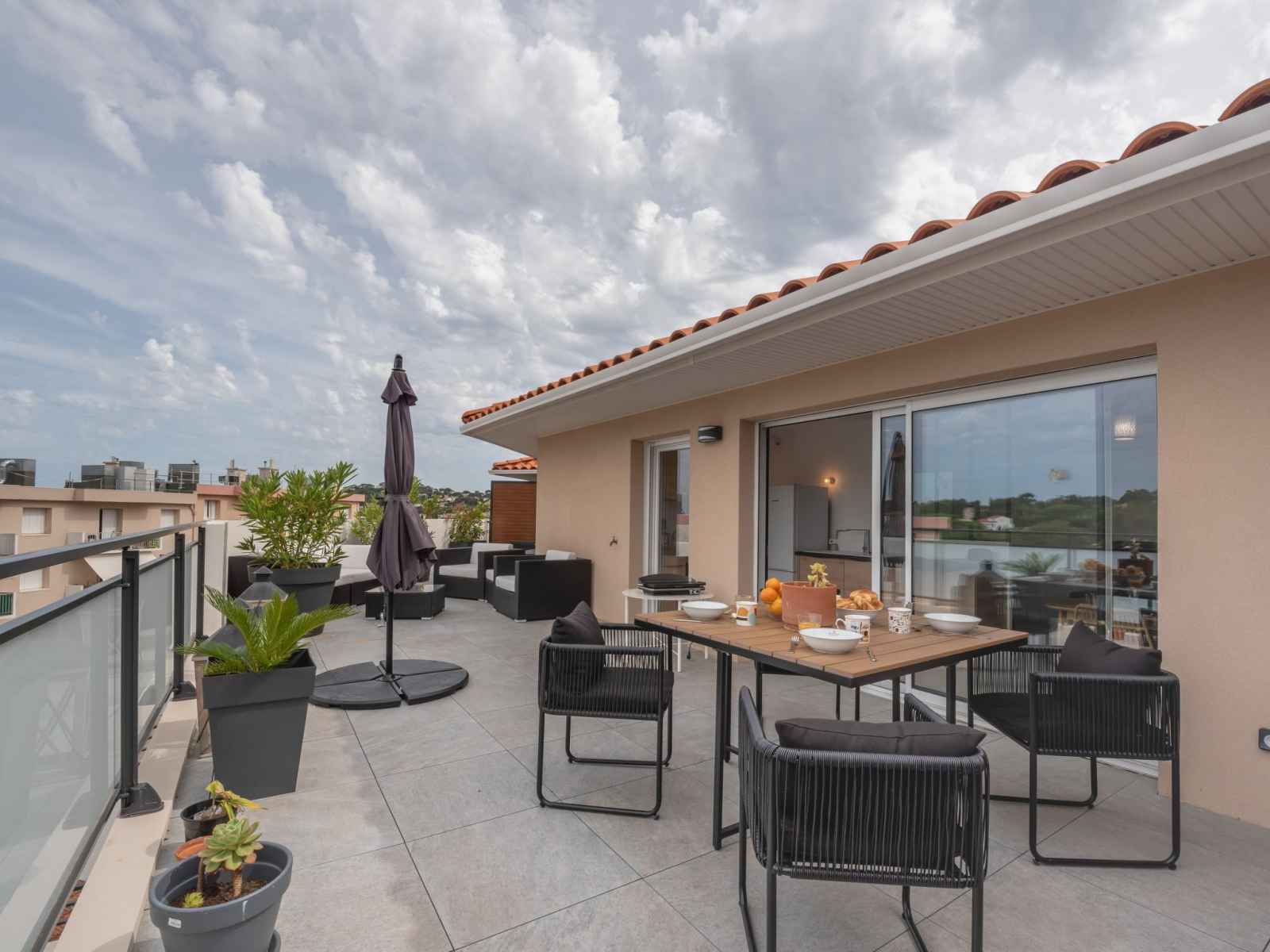 Apt 2 pièces 50 m2 au 4ème étage. aménagement agréable et moderne: séjour/salle à manger avec 1 divan-lit double (1 x 140 cm, longueur 190 cm), tv (écran plat), volet roulant électrique. sortie sur la terrasse. 1 chambre avec 1 grand-lit (160 cm, longueur 200 cm), air-conditionné. sortie sur la terrasse. cuisine ouverte (lave-vaisselle,