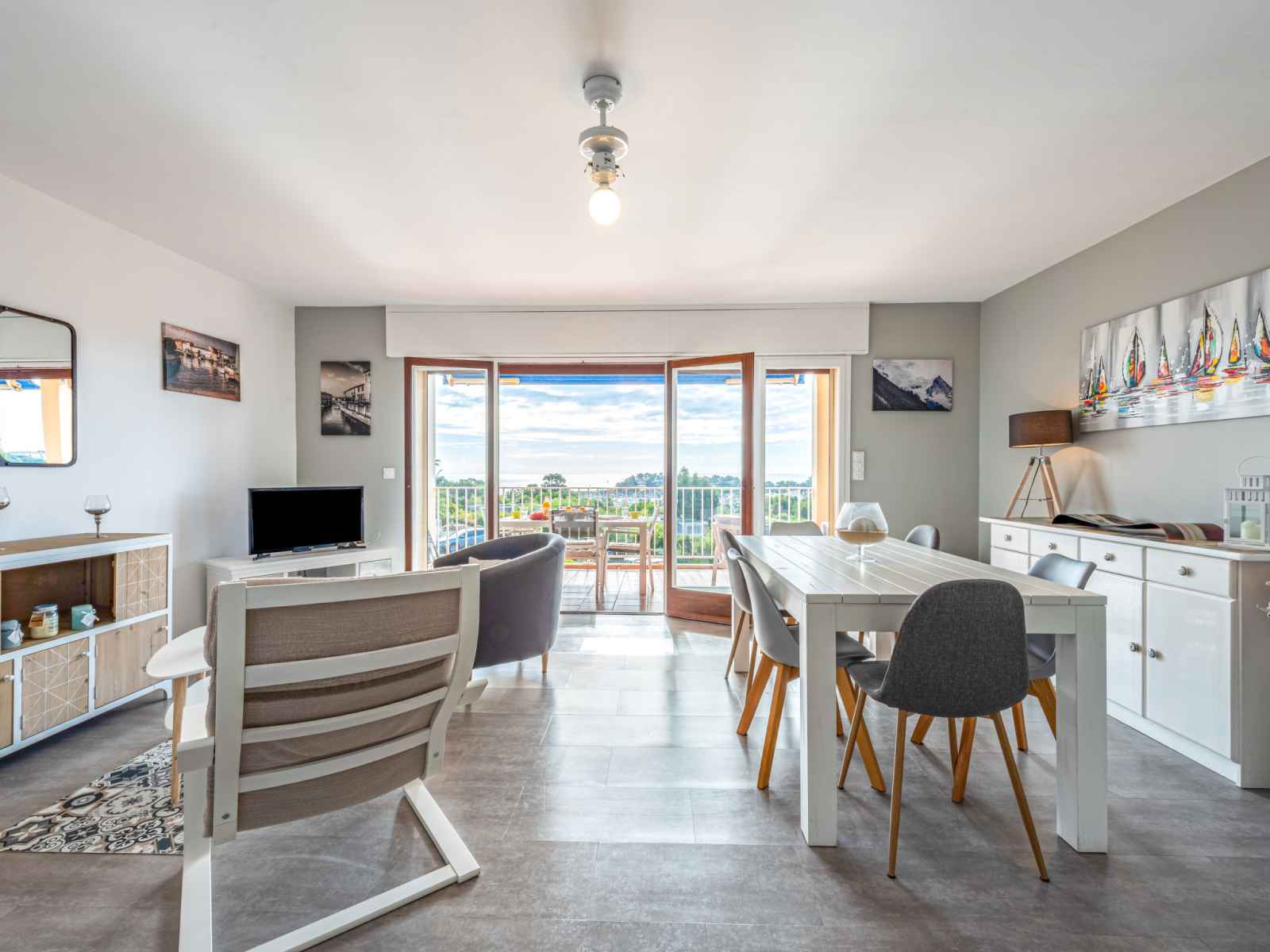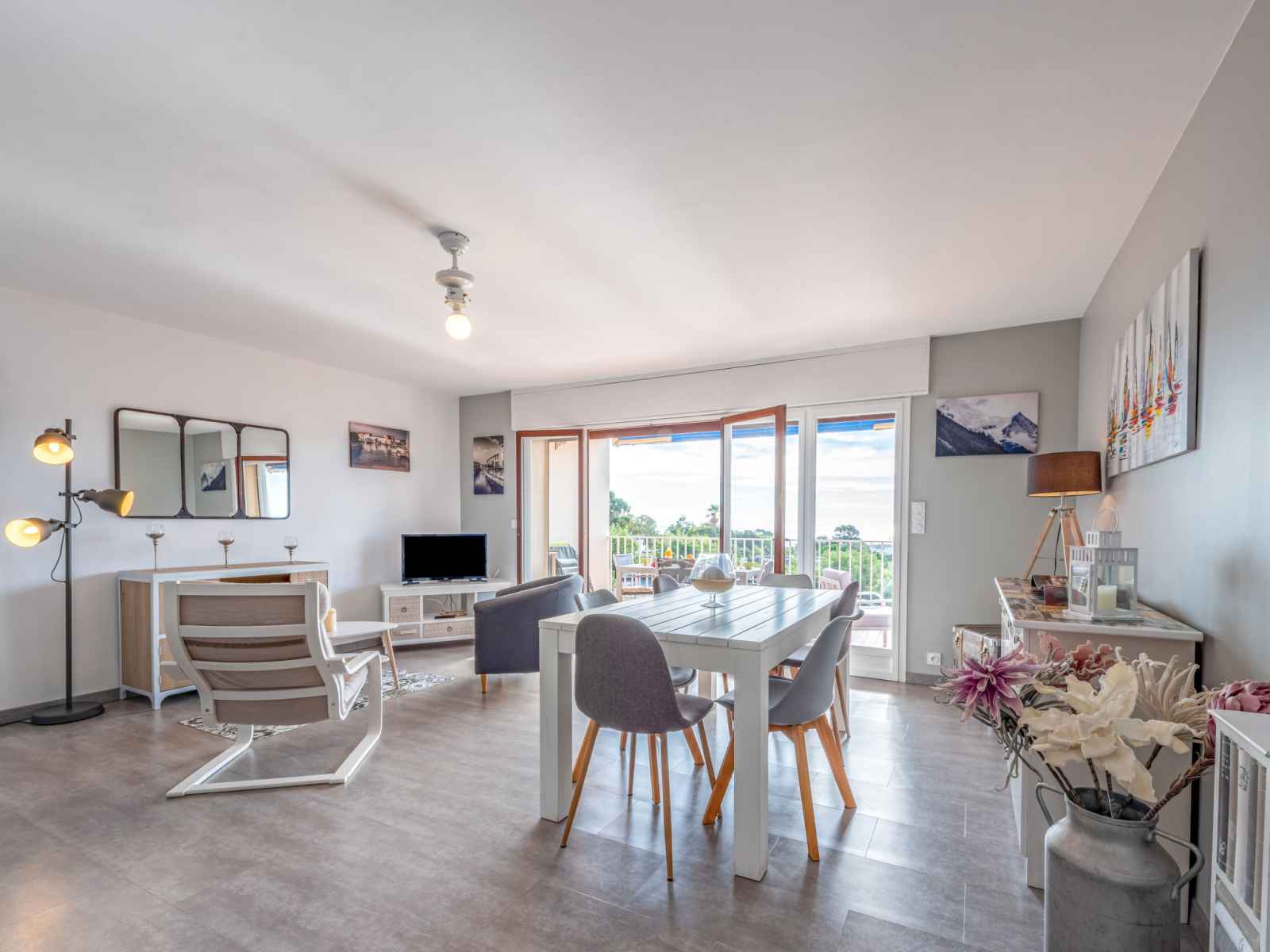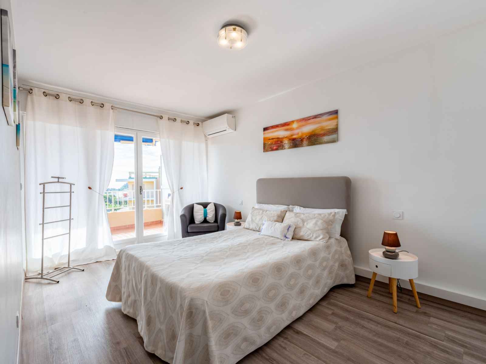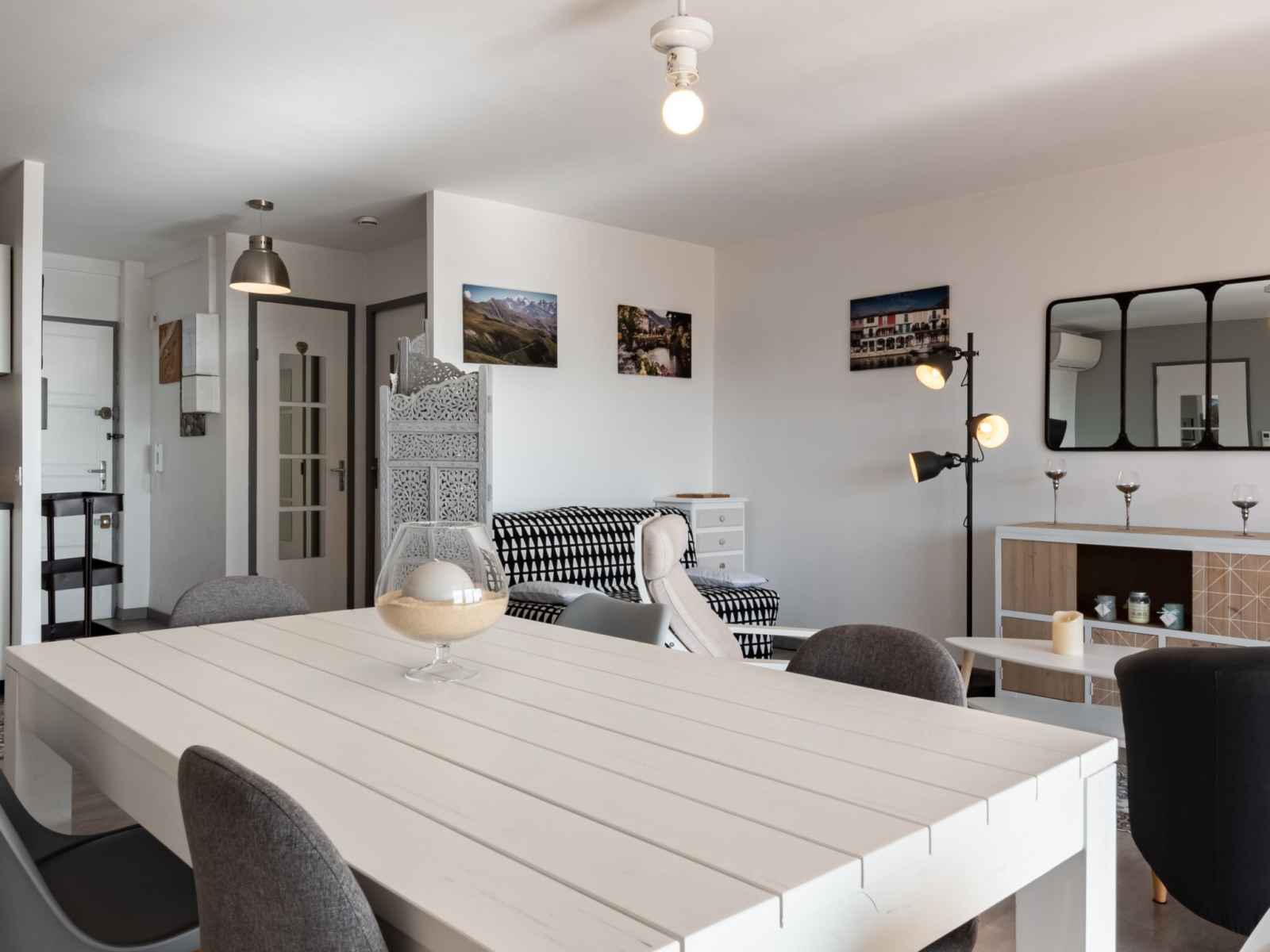 Apt 2 pièces 60 m2 au 2ème étage. complètement rénové en 2020, aménagement moderne et de bon goût: séjour avec baie vitrée avec 1 divan-lit (140 cm, longueur 190 cm), tv (écran plat), air-conditionné et volet roulant électrique. sortie sur la terrasse. 1 chambre avec 1 grand-lit (160 cm, longueur 200 cm), air-conditionné. coin