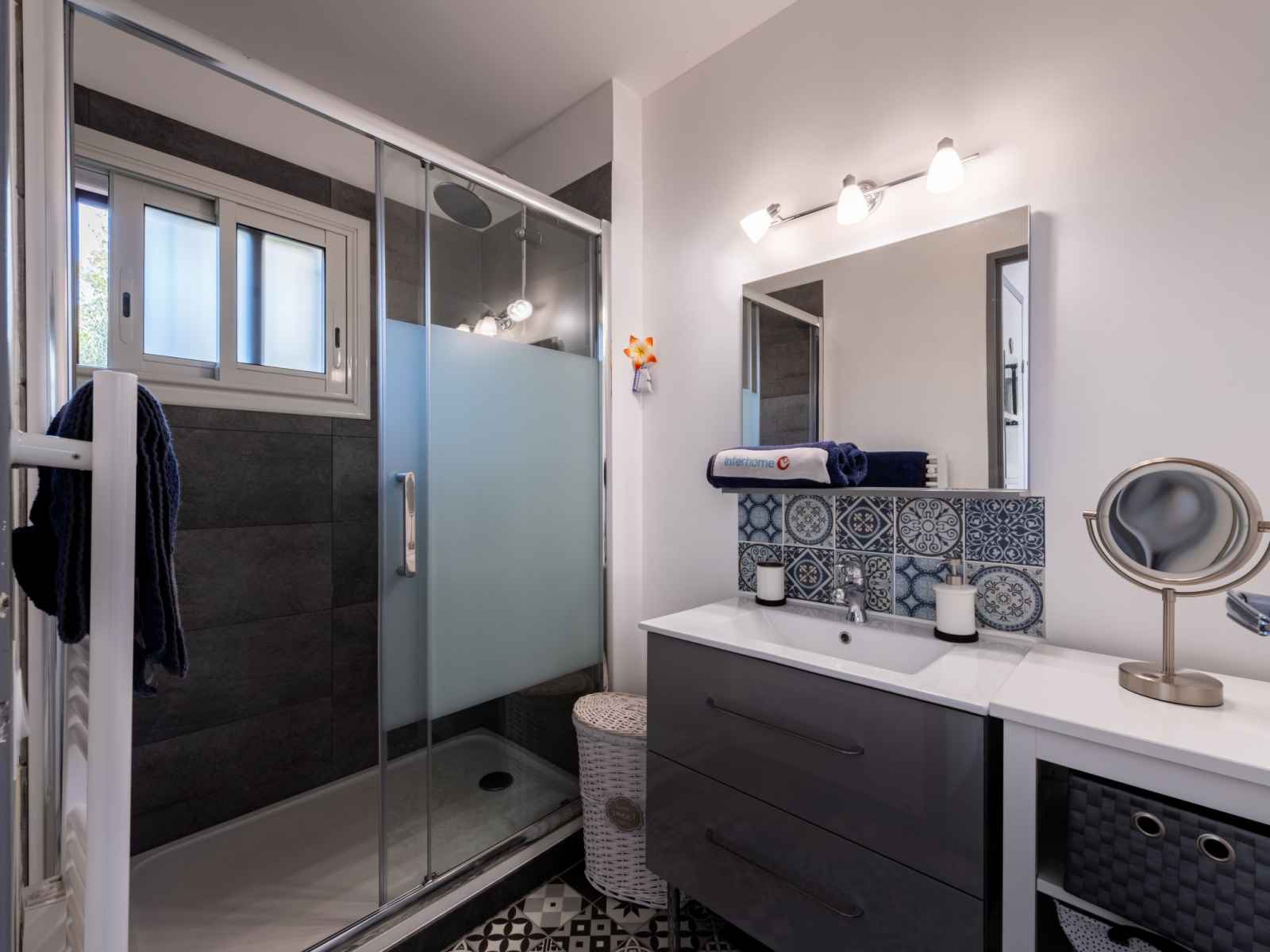 cuisine (lave-vaisselle, 3 plaques vitrocéramiques, grille-pain, bouilloire électrique, congélateur, cafetière électrique, Capsules pour machine à café (Tassimo) (NON INCLUSES)). Douche, WC séparé. Chauffage électrique, chauffe eau (150 litres). Grande terrasse 20 m2. Meubles de terrasse. Très belle vue sur la mer, le port et la baie. A disposition: lave-linge, fer à repasser, sèche-cheveux. Internet (Connexion WIFI, gratuit). Place de parking. Veuillez noter: maximum 1 animal/ chien autorisé. Détecteur de fumée. Annonce d'un particulier (art 155, IV du CGI).