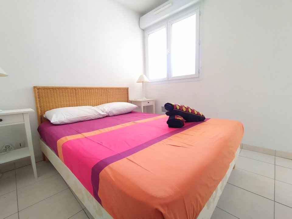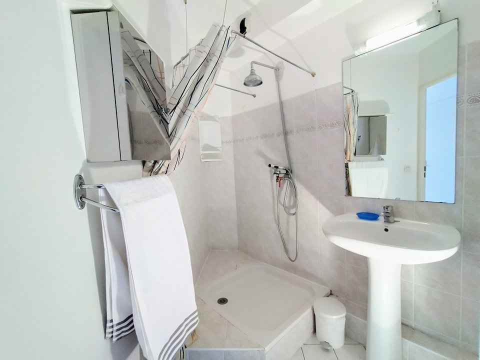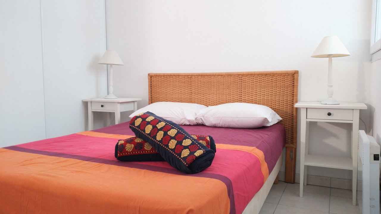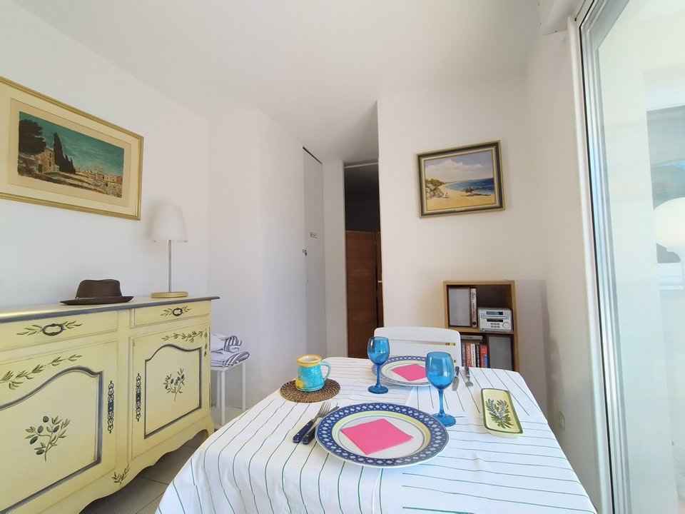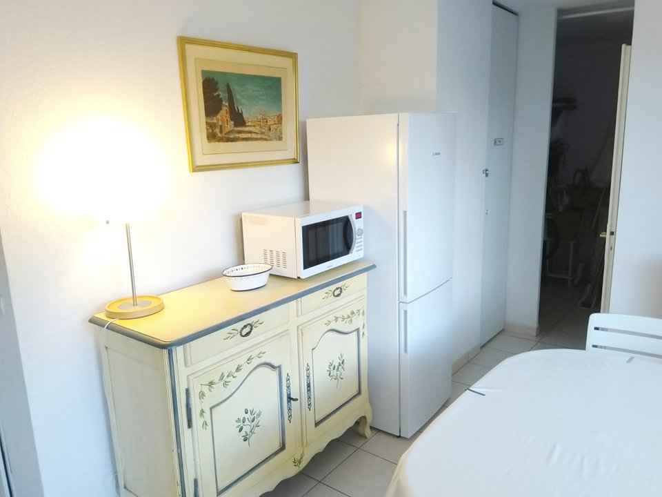 réfrigérateur-congélateur, four micro-ondes, mini-four, chambre 1 lit 2 pers, salle de bains (douche), wc séparé. TV. 50m Centre ville - 50m Commerces - 300m Marina - 400m Plages de sable.