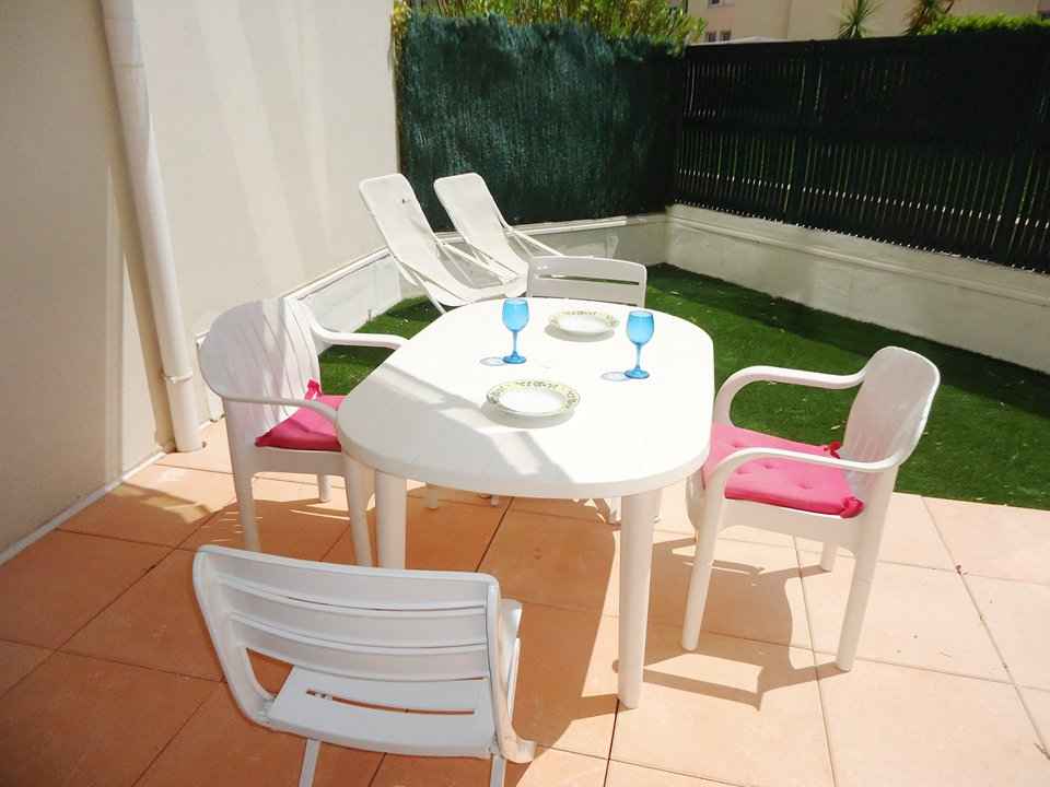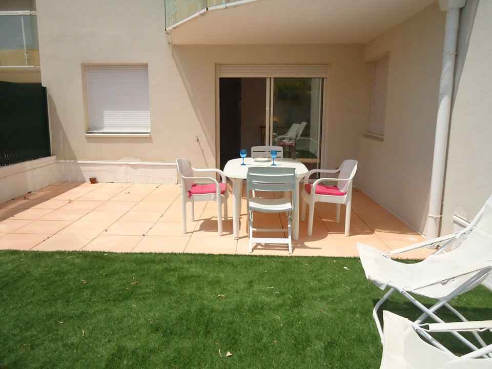 Bel appartement 2 pièces avec terrasse en rez de jardin de 15m2 ,dans résidence à 400m plage, 50m des commerces, exposition sud, place de parking privée en sous-sol. (navette des plages gratuite en été)
