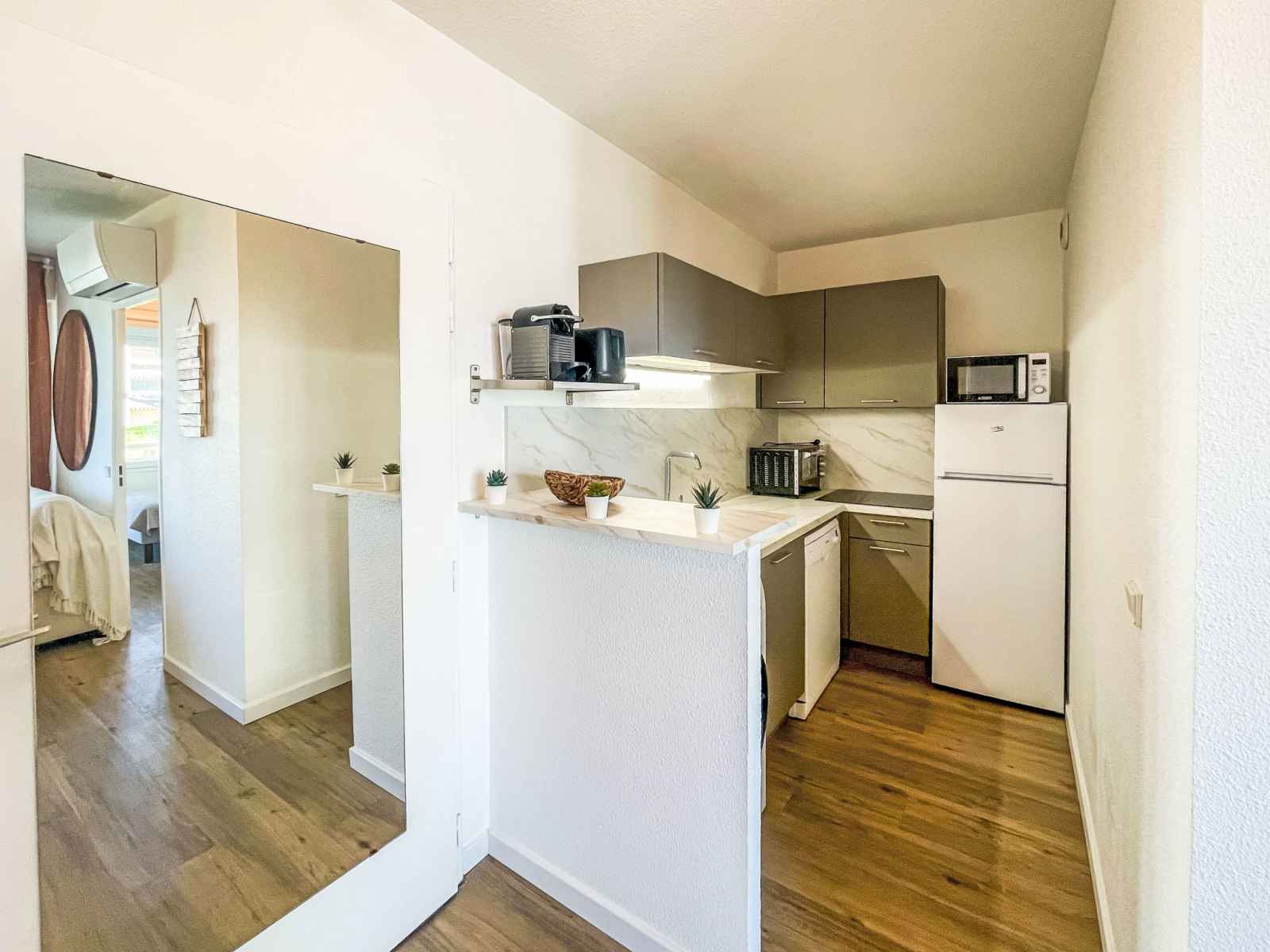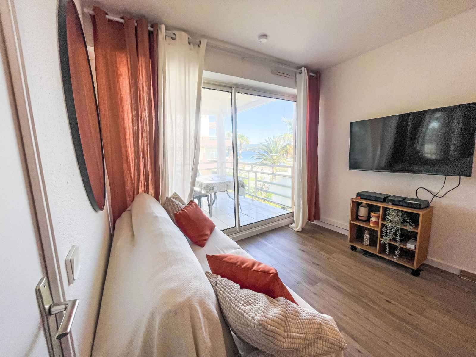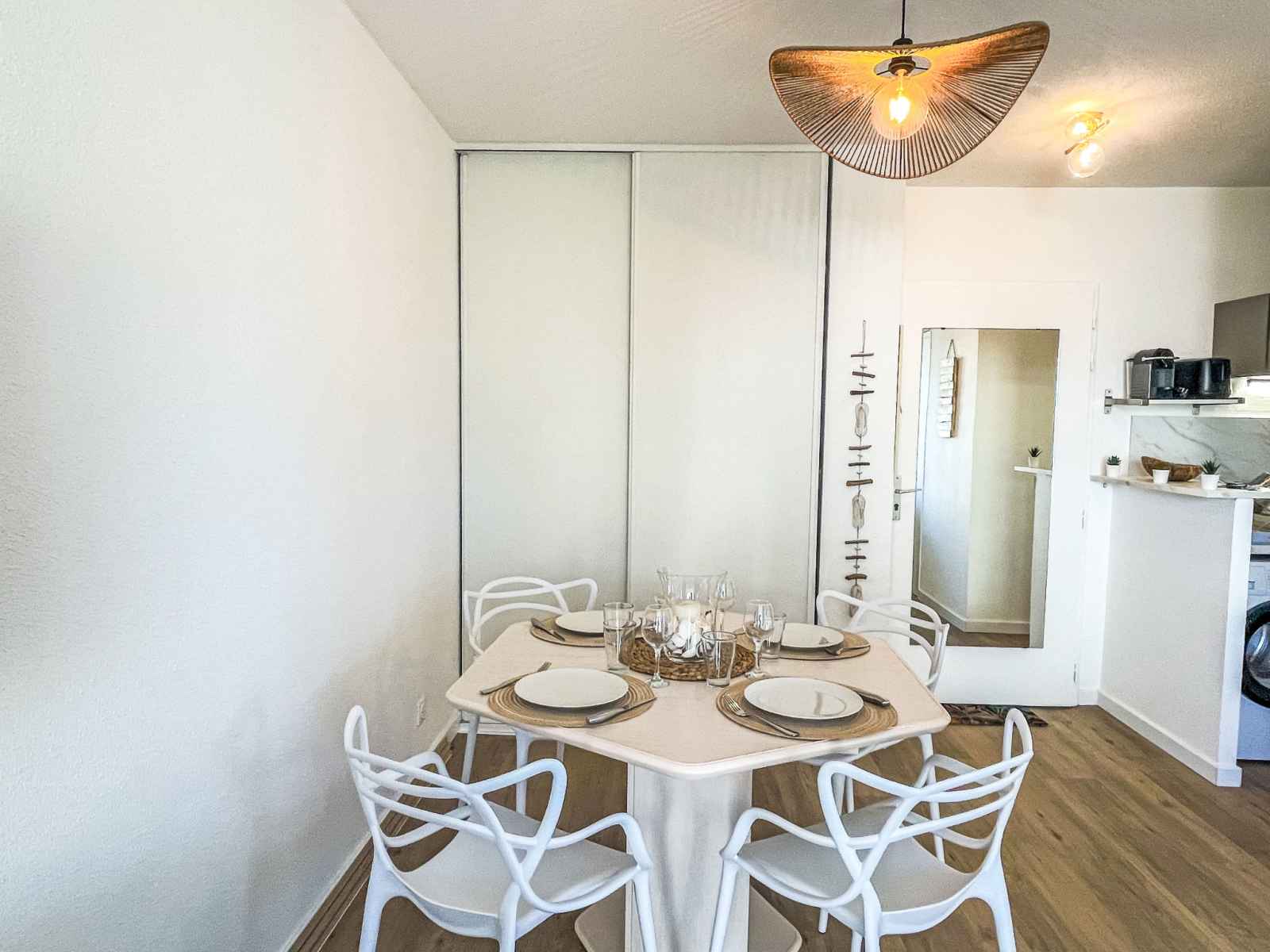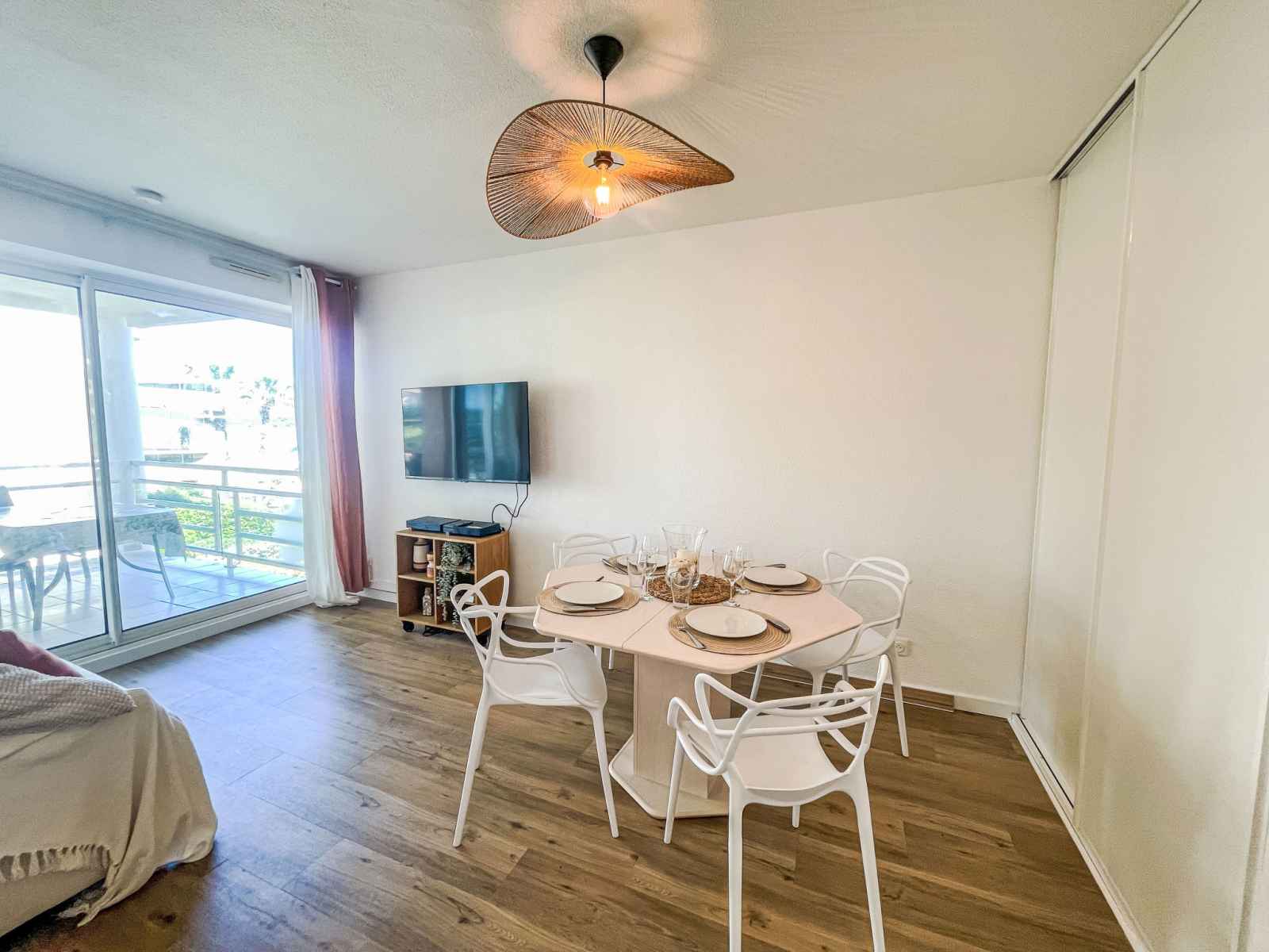 Apt 2 pièces 40 m2 au 1er étage. complètement rénové en 2025, aménagement confortable et agréable: séjour/salle à manger avec 1 divan-lit double (1 x 140 cm, longueur 190 cm), tv (écran plat). sortie sur la terrasse. 1 chambre avec 1 grand-lit (1 x 160 cm, longueur 190 cm). sortie sur la terrasse. cuisine ouverte (4 plaques de cuisson,