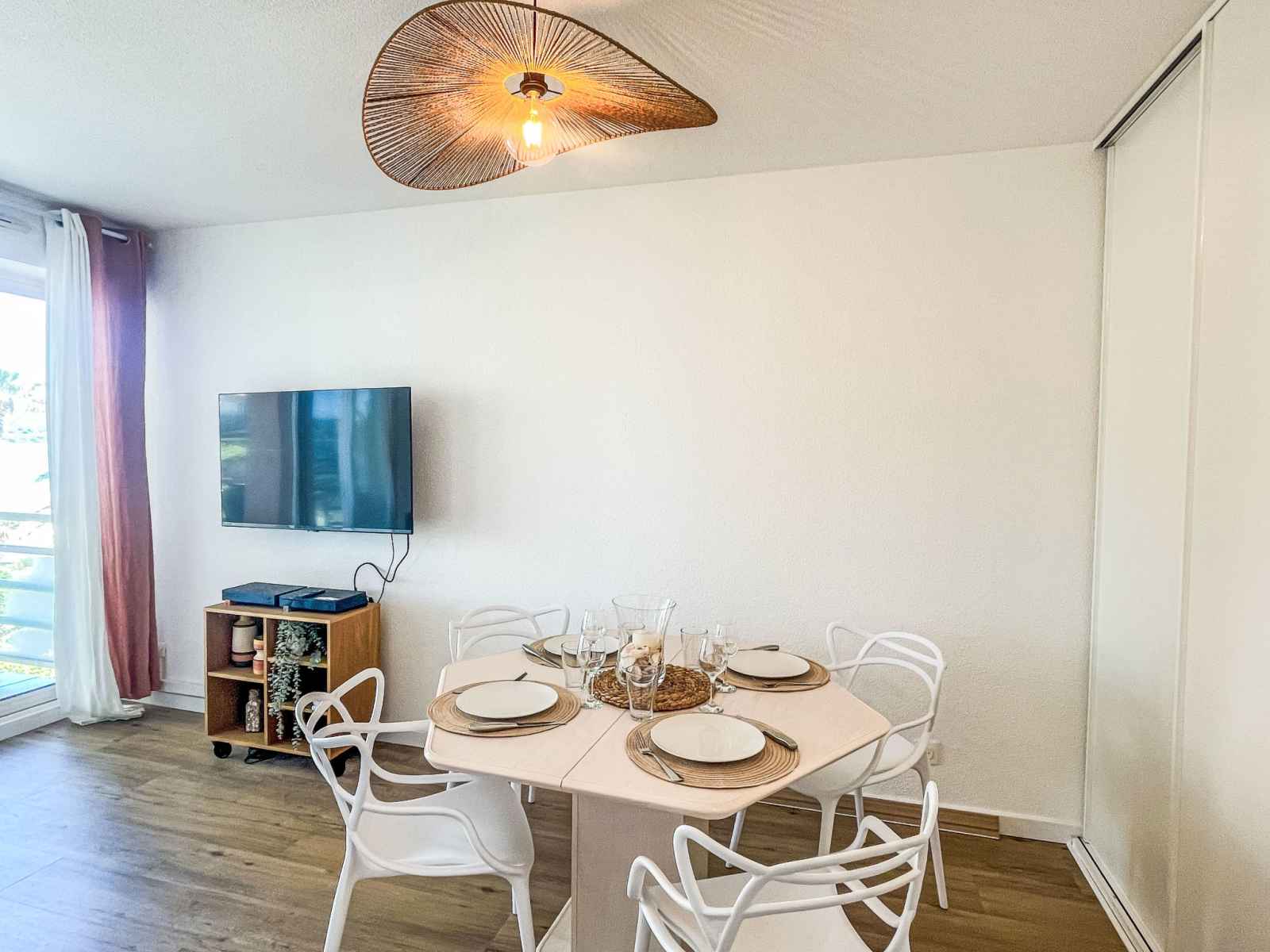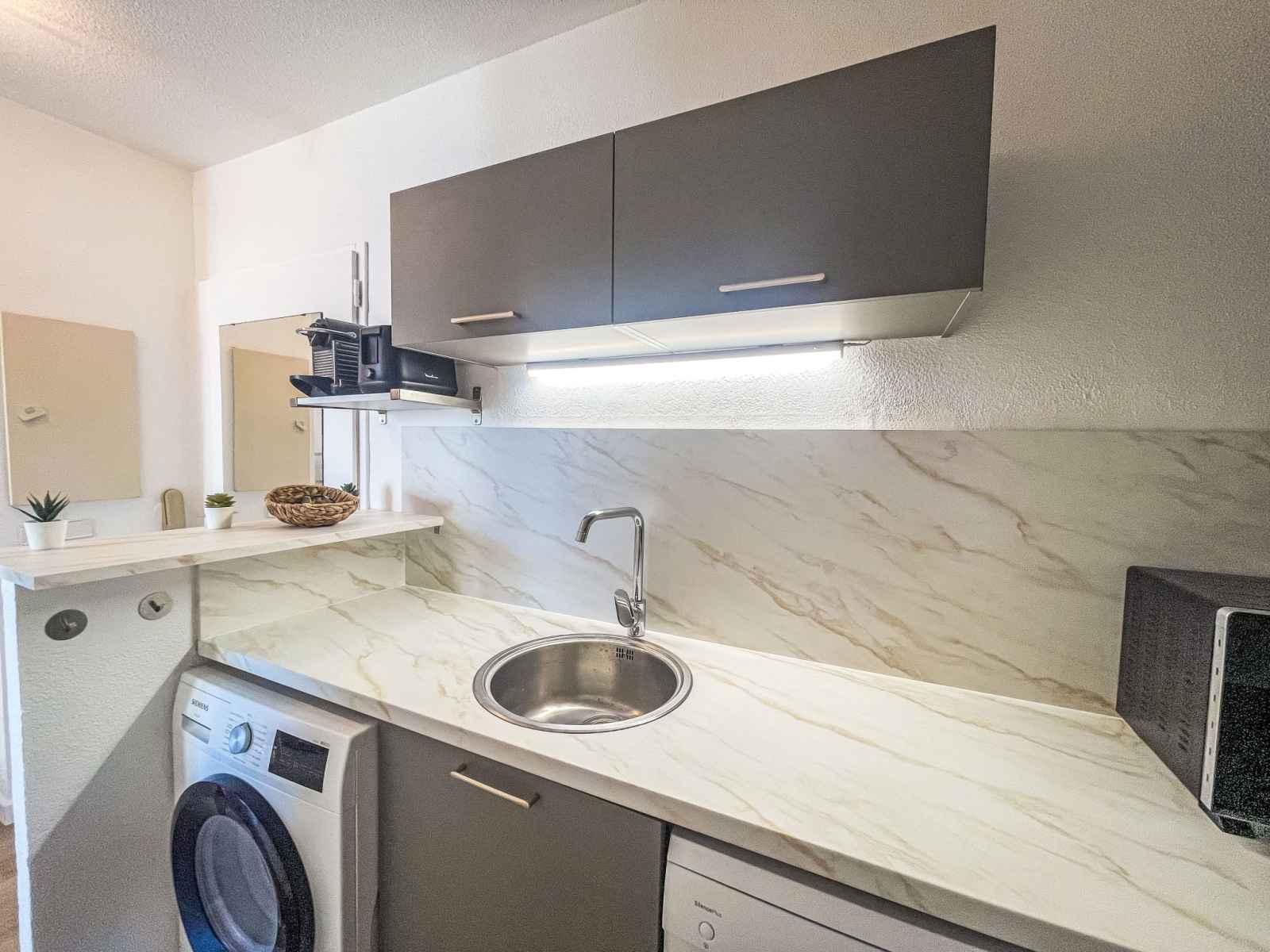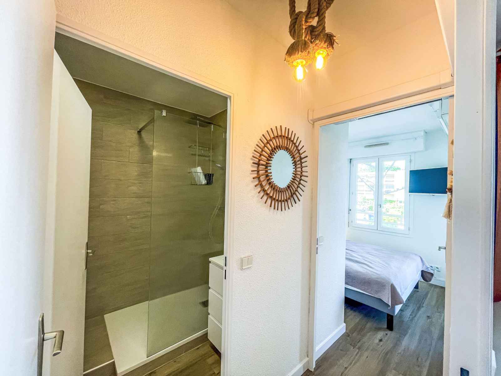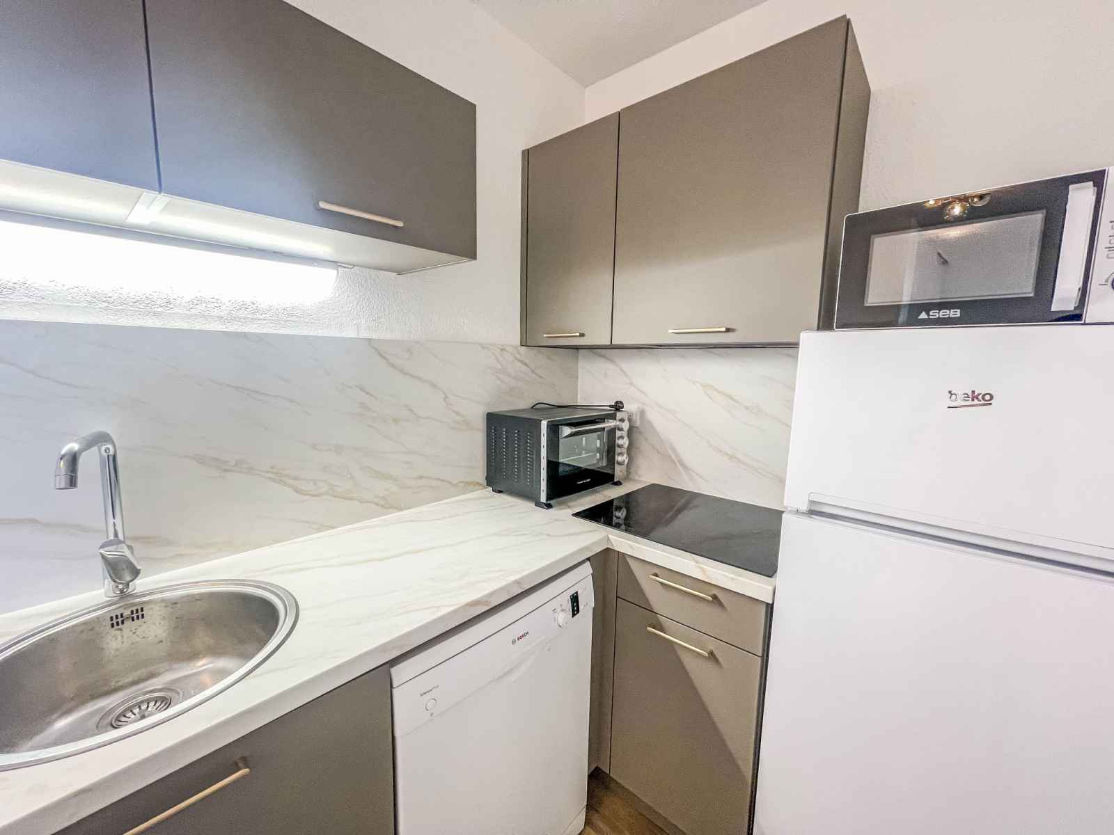 Apt 2 pièces 40 m2 au 1er étage. complètement rénové en 2025, aménagement confortable et agréable: séjour/salle à manger avec 1 divan-lit double (1 x 140 cm, longueur 190 cm), tv (écran plat). sortie sur la terrasse. 1 chambre avec 1 grand-lit (1 x 160 cm, longueur 190 cm). sortie sur la terrasse. cuisine ouverte (4 plaques de cuisson,