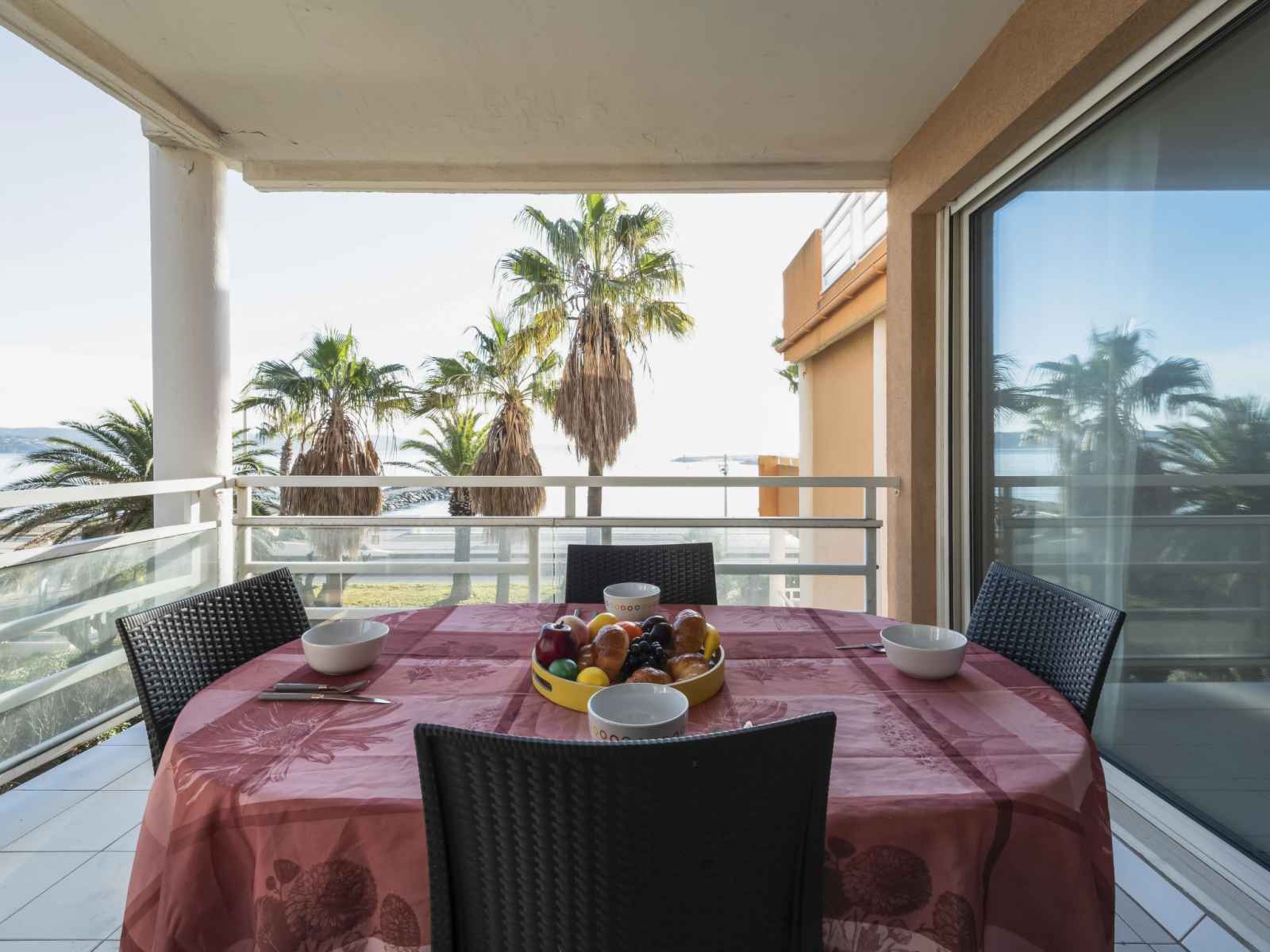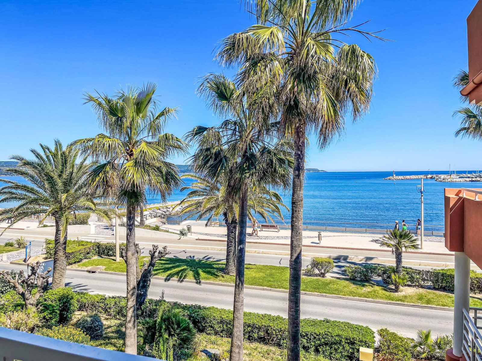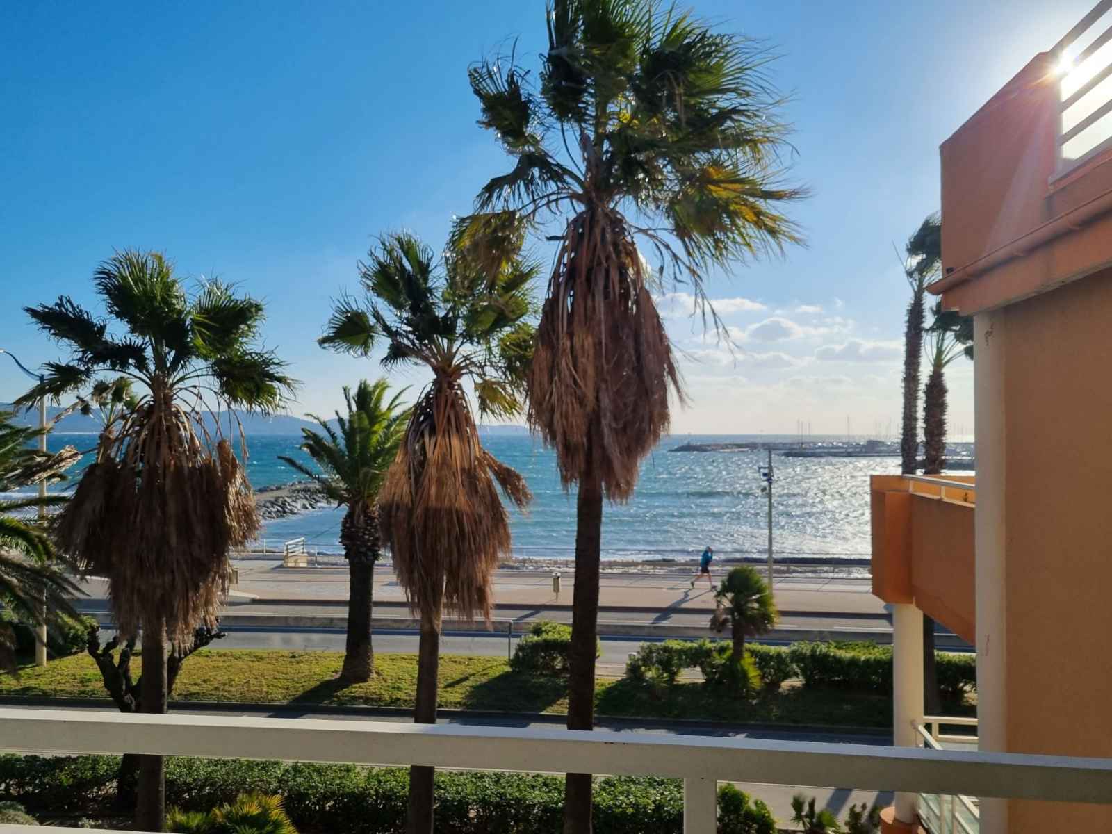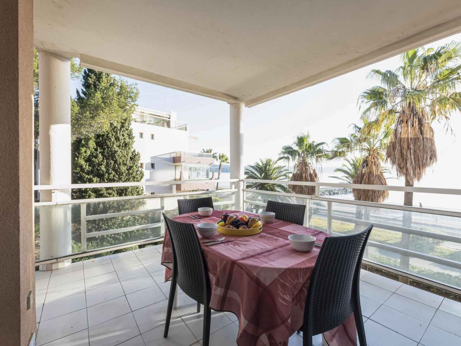 mini-four, lave-vaisselle, grille-pain, bouilloire électrique, micro-ondes, congélateur, cafetière électrique, Capsules pour machine à café (Nespresso) (NON INCLUSES)). Bain/WC. Chauffage électrique, air-conditionné, chauffe eau (150 litres). Grande terrasse 20 m2, couverte, situation sud-est. Meubles de terrasse. Belle vue sur la mer et le port. A disposition: lave-linge, fer à repasser, sèche-cheveux. Internet (Connexion WIFI, gratuit). Place de parking No 10 (couvert, cloturée, 1 Voiture), hauteur 200 cm, largeur 240 cm. Veuillez noter: logement non-fumeur. Maximum 1 animal/ chien autorisé. Détecteur de fumée. Annonce d'un particulier (art 155, IV du CGI).