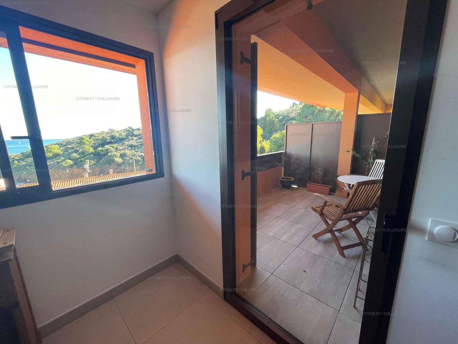 2terimp204 adorable t2 avec terrasse et vue dégagée sur mer, climatisation, et parking privé (box) dans résidence neuve de 2023, route impériale à collioure.