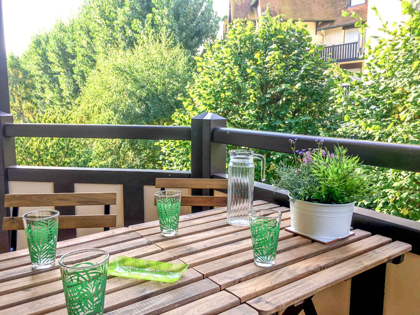 Deauville: belle résidence "le fairway", environnée par les arbres. en bordure de la localité, à 1.5 km du centre, dans un quartier résidentiel, à 400 m de la mer, à 400 m de la plage, dans une impasse. infrastructures de la résidence: ascenseur. magasins 900 m, magasin d'alimentation, supermarché 300 m, restaurant 900 m, arrêt de bus "1