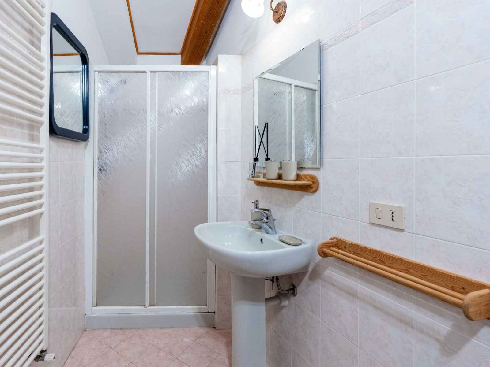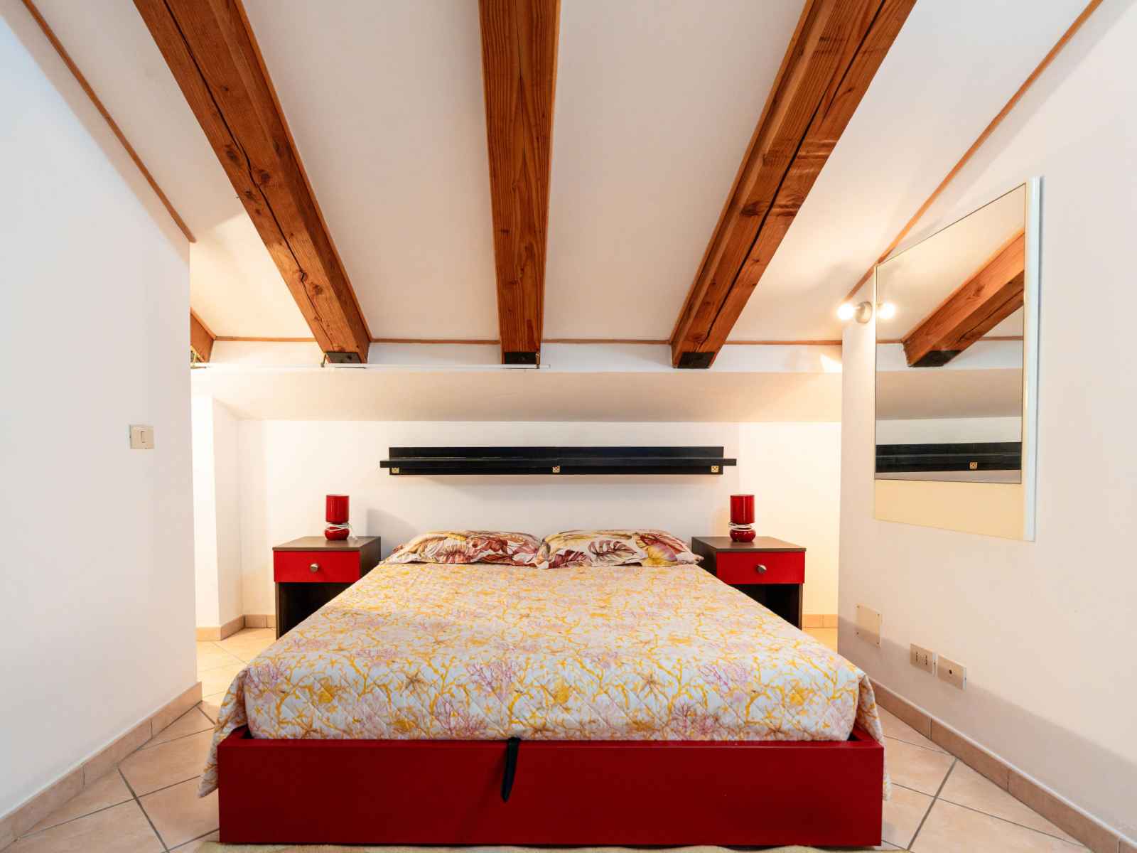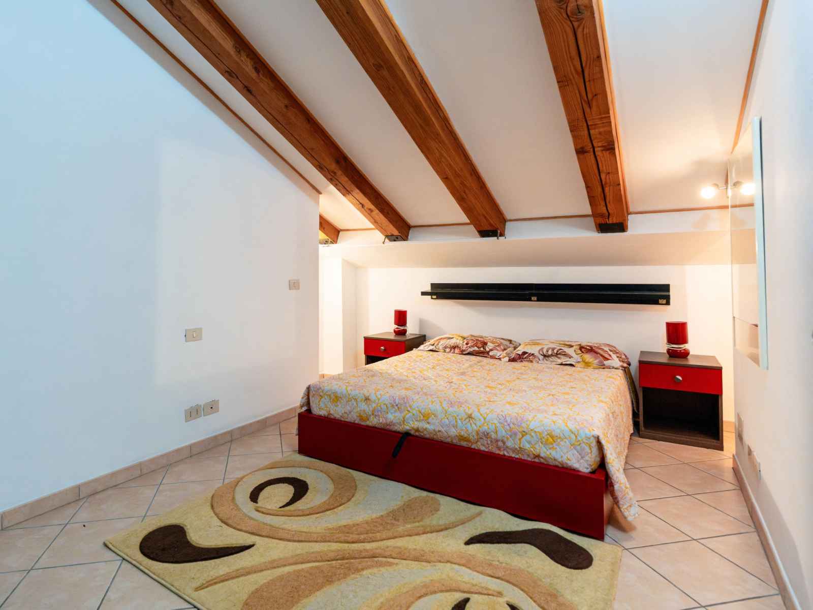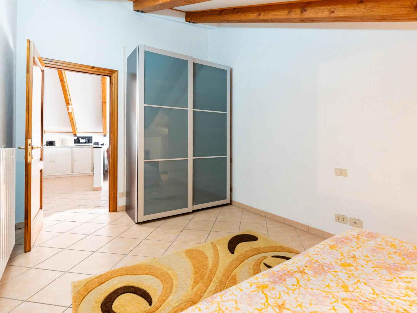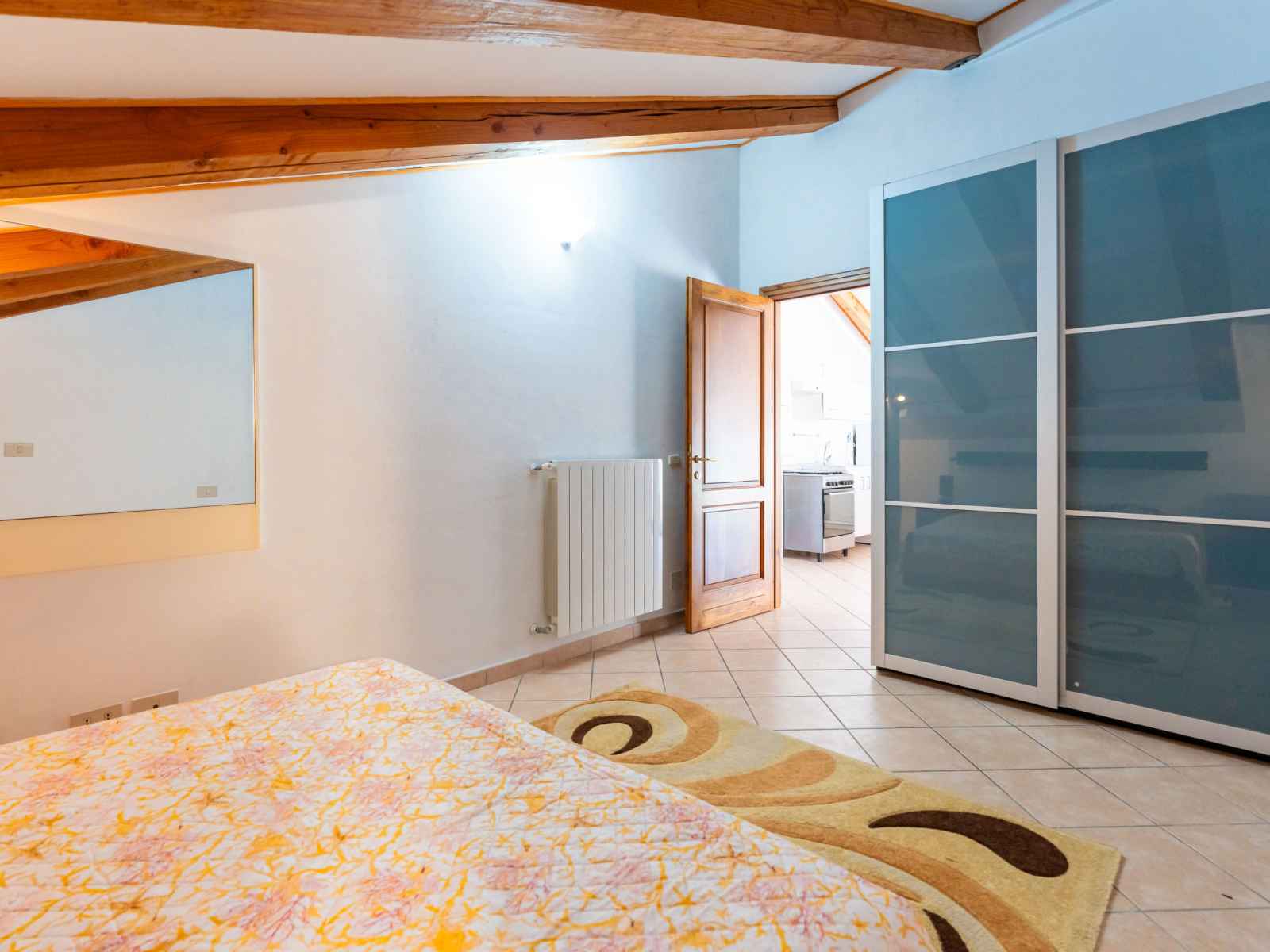 "mansarda", apt 2 pièces 50 m2, sous le toit. mansardé, aménagement fonctionnel et plaisant: séjour/salle à manger avec 1 divan-lit double (160 cm, longueur 200 cm). sortie sur la terrasse. 1 chambre double hauteur plafond 100 - 220 cm. coin cuisine (four, 4 feux, grille-pain, bouilloire électrique). douche/bidet/wc. chauffage au gaz,