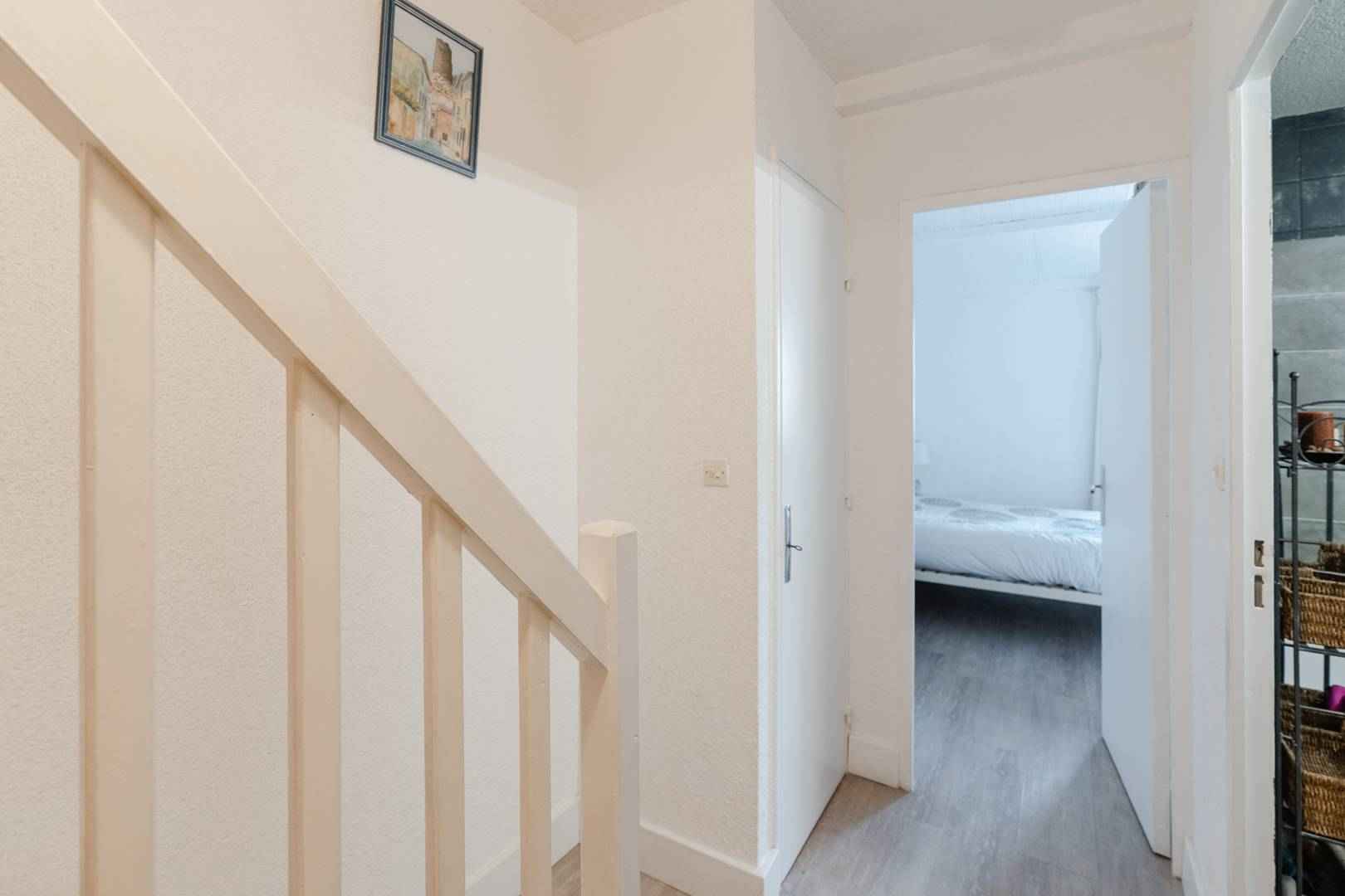 situé au deuxième et dernier étage, ce duplex comporte au rez-de-chaussée une entrée donnant accès à une