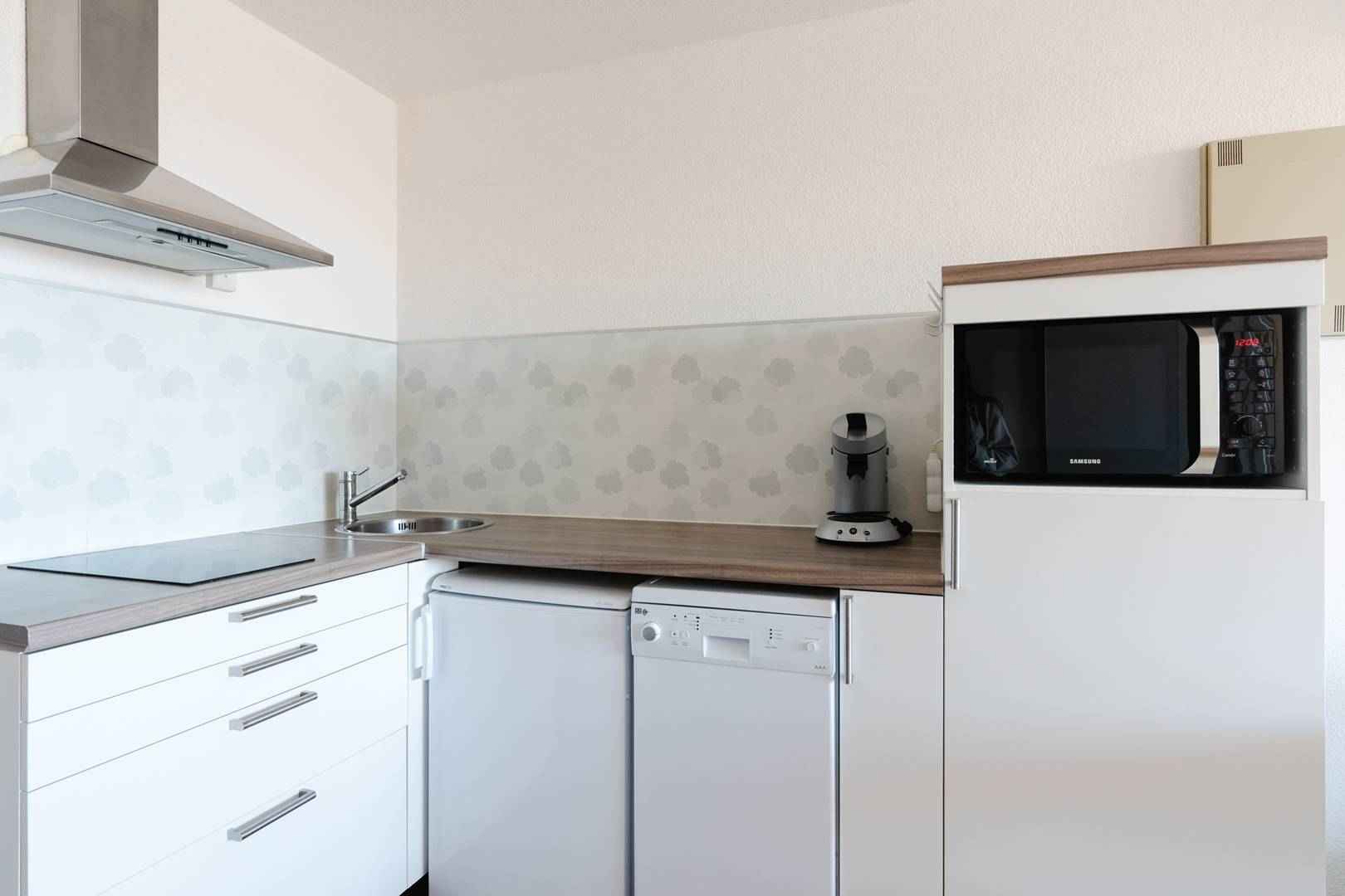 situé au quatrième et dernier étage avec ascenseur, cet appartement dispose d'un coin cuisine (micro-ondes,