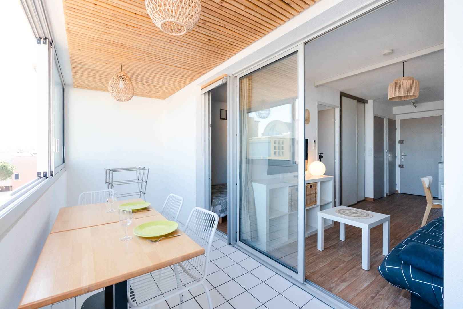 - Loggia-balcon 7.5m² (Loggia avec vue sur le port, table pour 4 personnes)