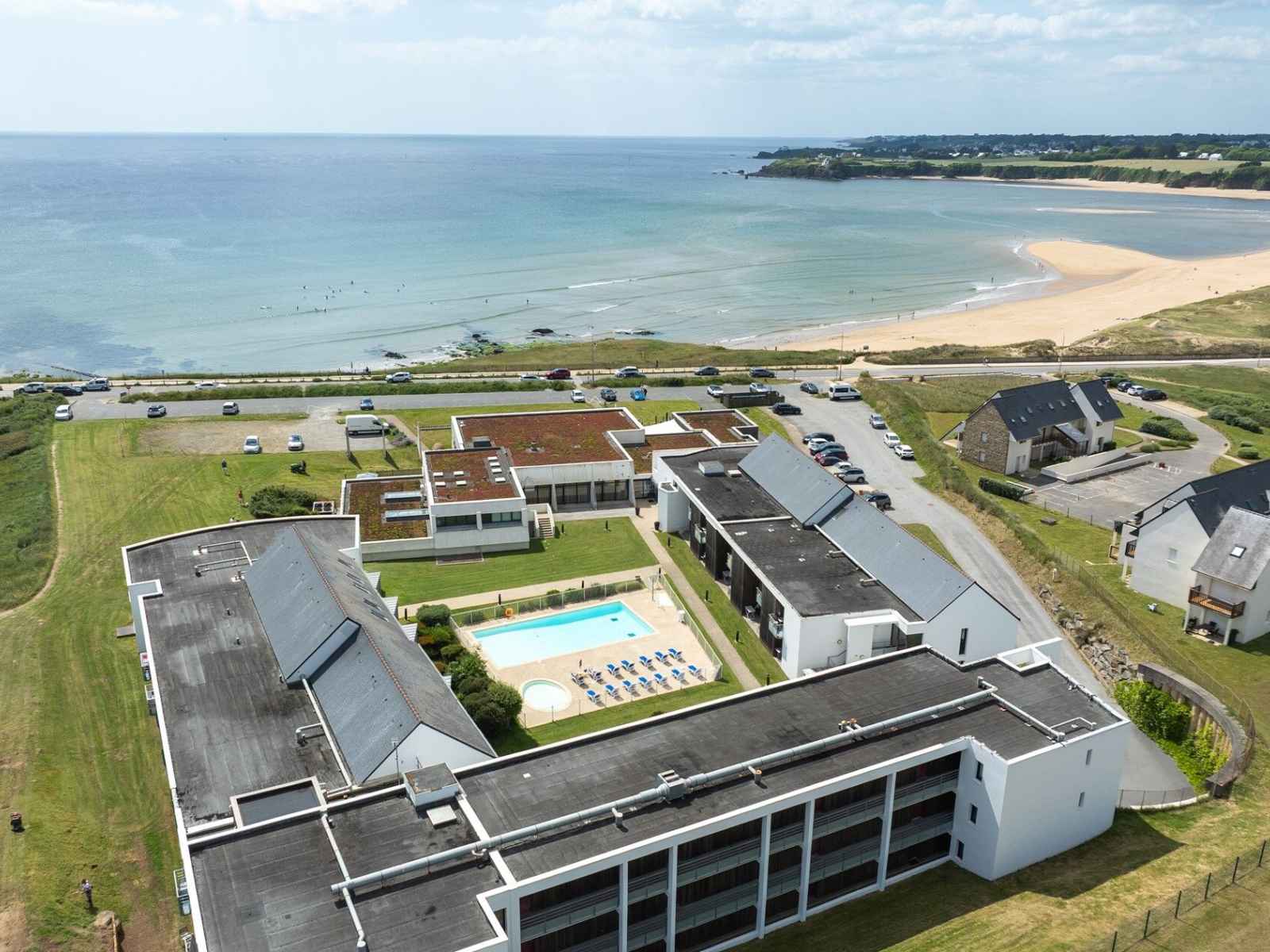À 15 km de lorient, à la limite du morbihan et du finistère, la station dynamique de guidel plages déroule ses 5 km de sable fin entre l’estuaire de la laïta et fort bloqué. bénéficiant d’un accès direct à la plage, la résidence propose des appartements spacieux avec balcon ou terrasse. vous profiterez d’une belle piscine