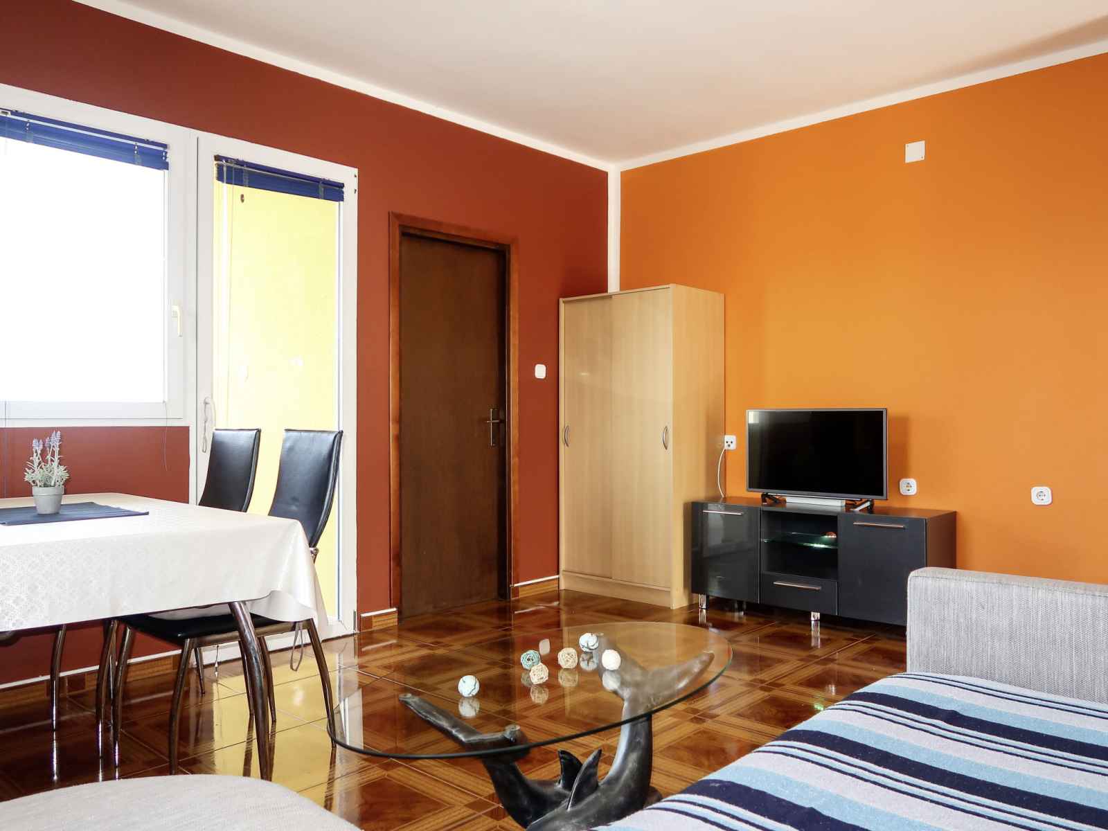 "daniel", apt 2 pièces 33 m2, au rez-de-chaussée. séjour/salle à manger avec tv (satellite) (écran plat), air-conditionné. sortie sur le balcon. 1 chambre avec 1 grand-lit (160 cm, longueur 200 cm). cuisine ouverte (1 plaque de cuisson, four, 3 feux, grille-pain, bouilloire électrique, micro-ondes, congélateur, cafetière électrique).