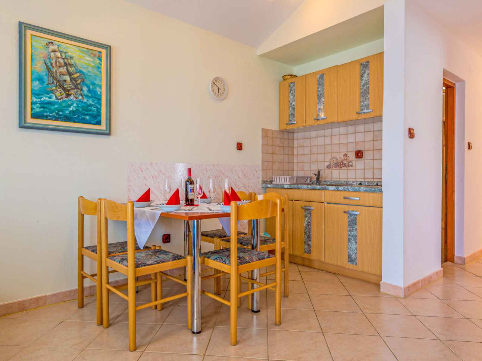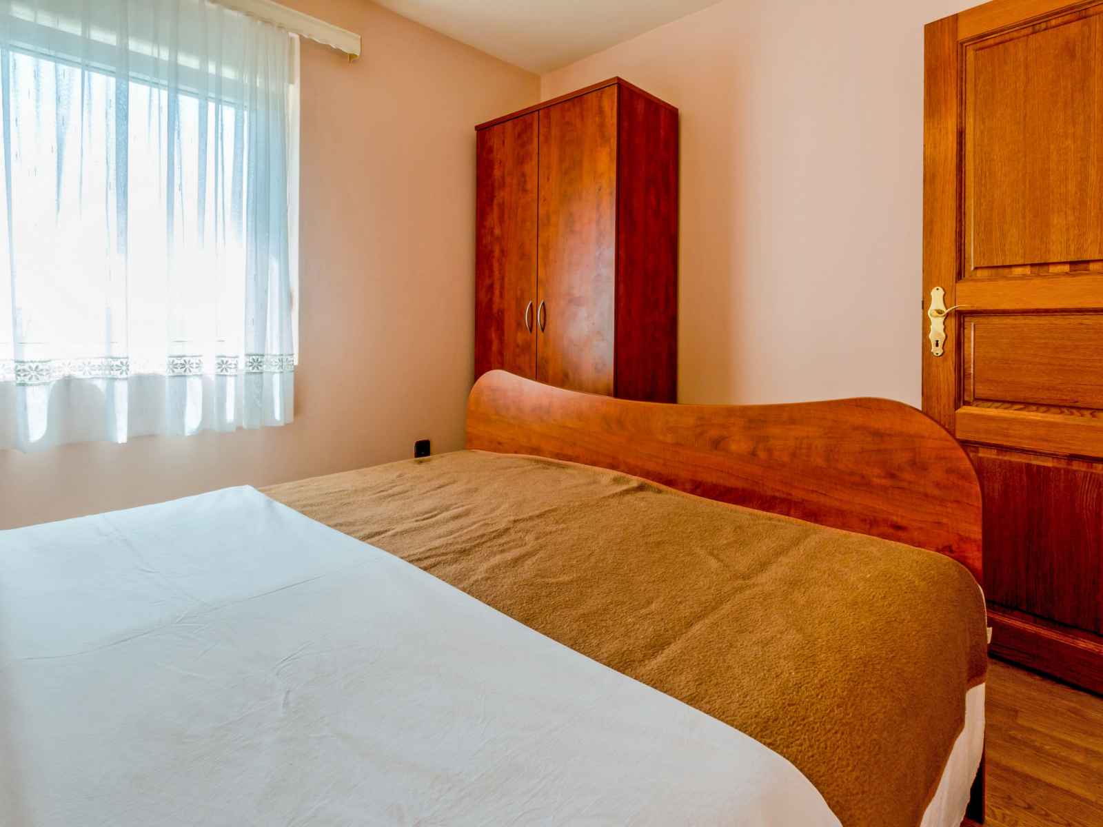Apt 2 pièces 38 m2 au 2ème étage. séjour/chambre à coucher 20 m2 avec 2 divans-lits (110 cm, longueur 190 cm), tv (satellite) (écran plat), air-conditionné. sortie sur la terrasse. 1 chambre avec 1 grand-lit (160 cm, longueur 200 cm). cuisine ouverte (2 plaques de cuisson, micro-ondes, cafetière électrique) avec table pour les repas.