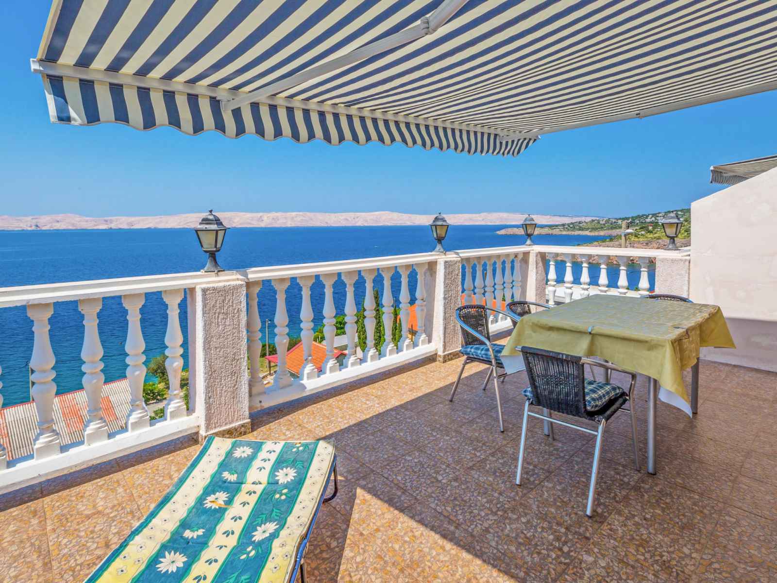 Douche/WC. Pas de chauffage. Terrasse 15 m2. Meubles de terrasse. Superbe vue sur la mer. A disposition: sèche-cheveux. Internet (Connexion WIFI, gratuit). 1 animal/ chien de petite taille autorisé.