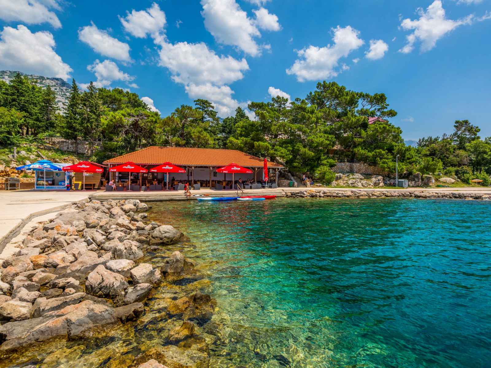 Ribarica à 5 km de karlobag: immeuble "delfin". situation tranquille, ensoleillée, à 250 m de la mer, à 250 m de la plage. en commun: terrain 400 m2, piscine rectangulaire (12 x 4 m, profondeur 130 cm, disponibilité saisonnière: 01.jun. - 15.sep.) avec marches intérieures. douche extérieure. infrastructures de la maison: restaurant, accès