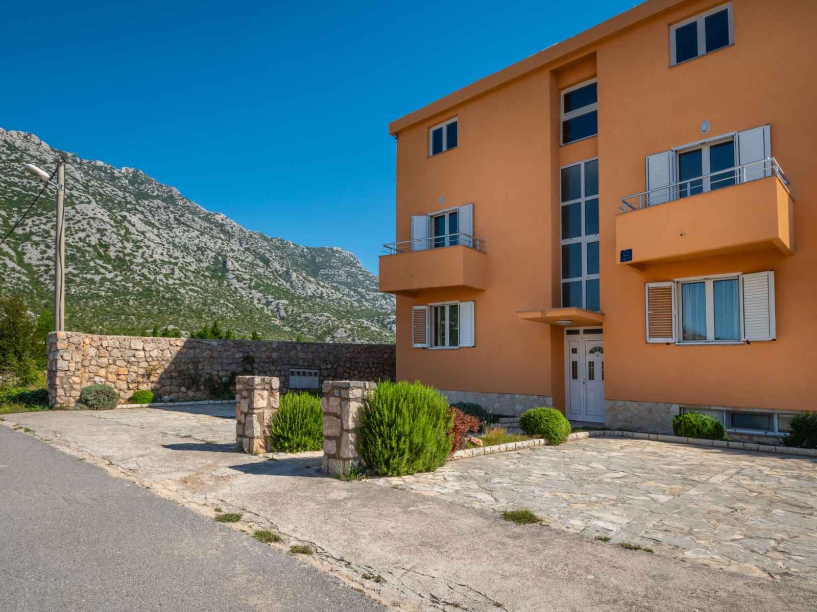 Cesarica à 5 km de karlobag: immeuble "golub". situation ensoleillée, à 200 m de la mer, à 200 m de la plage, dans une impasse. en commun: terrasse, meubles de jardin, barbecue. infrastructures de la maison: accès internet, lave-linge (en commun, en sus). place de parking près de la maison sur le terrain. magasins 1.5 km, restaurant 800 m,