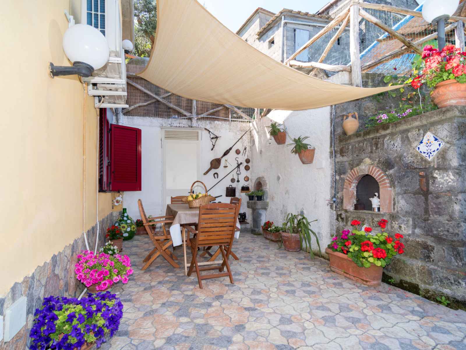 piscine (hors sol) cloturée (2 x 4 m, profondeur 110 - 110 cm, disponibilité saisonnière: 01.mai. - 30.sep.). douche extérieure, jardinet (30 m2), meubles de jardin, barbecue, entretien de la piscine par le propriétaire/jardinier. infrastructures de la maison: connexion wifi, air-conditionné, possibilité de chauffage uniquement du 01.nov. - 31.mar.. place de parking no 2 près de la maison. magasin d'alimentation, supermarché 50 m, restaurant, bar 100 m, arrêt de bus 20 m, gare ferroviaire "sorrento" 9 km, ferry 9 km, plage de graviers "marina del cantone" 5 km, centre de plongée 5 km. attractions à proximité: sorrento 9 km, positano 18 km, amalfi 35 km, ischia, capri, napoli 60 km. veuillez noter: voiture recommandée. Équipement pour bébés sur demande (en sus), garde d'enfants en saison (en sus). la remise des clés a lieu à l’agence interhome de sant'agnello, 12 km. le propriétaire habite sur le même terrain. le propriétaire a un chien.