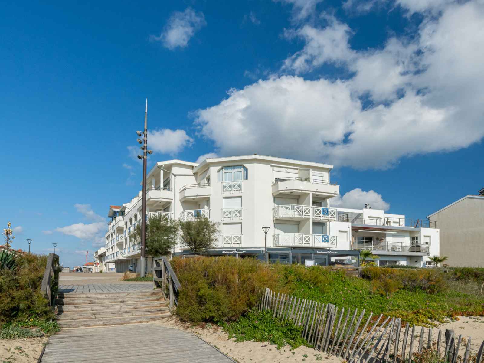 supermarché 600 m, restaurant 10 m, bar 100 m, boulangerie 150 m, location de bicyclettes 300 m, arrêt de bus 450 m, gare ferroviaire "labouheyre" 30 km, plage de sable "la garluche" 150 m, parc "landes aventure" 6 km, piscine couverte 6 km, baignade en lac "aureilhan" 10 km. terrain de golf (9 trous) 6 km, ecole de surf 350 m, centre équestre 10 km. attractions à proximité: bordeaux 120 km, arcachon 70 km, biscarrosse 40 km, centre nautique 7 km, casino mimizan plage. région de randonnées: parc naturel régional des landes 45 km.