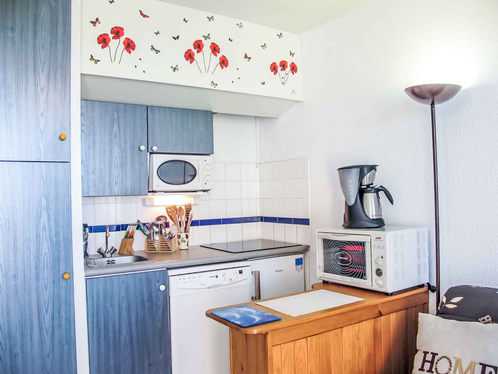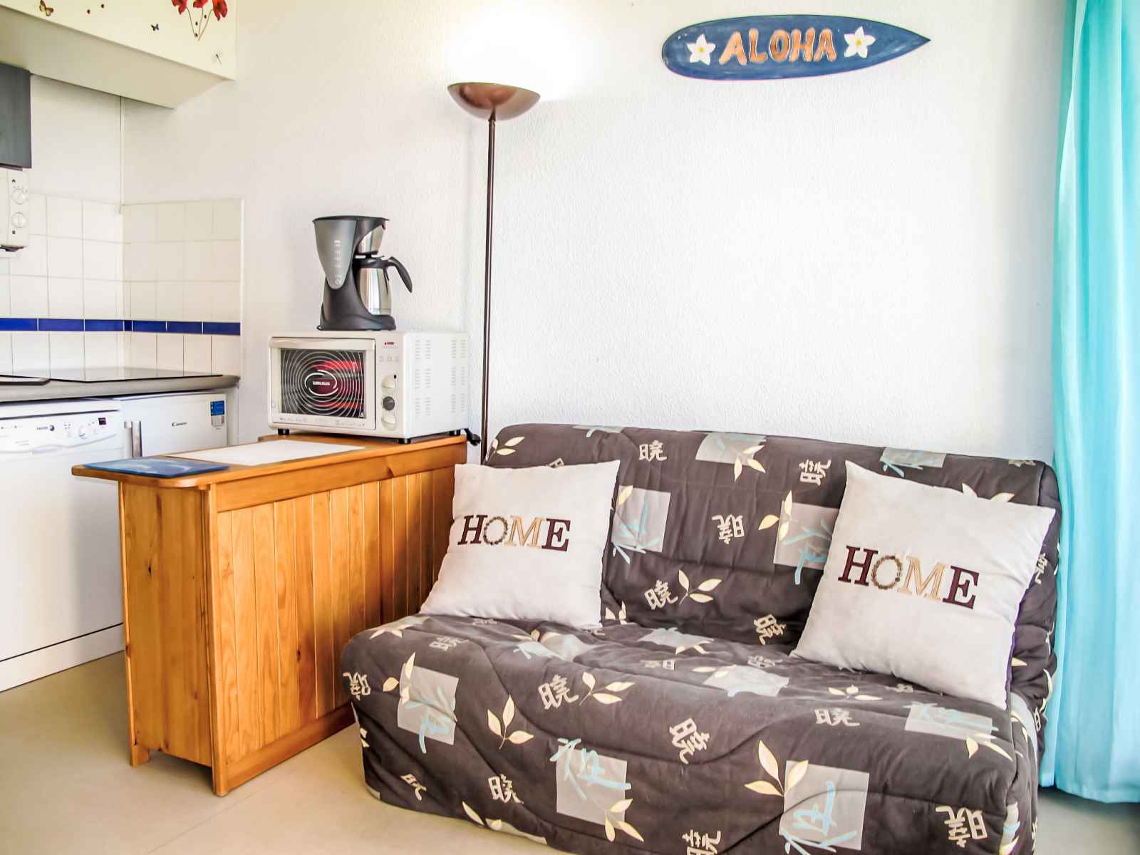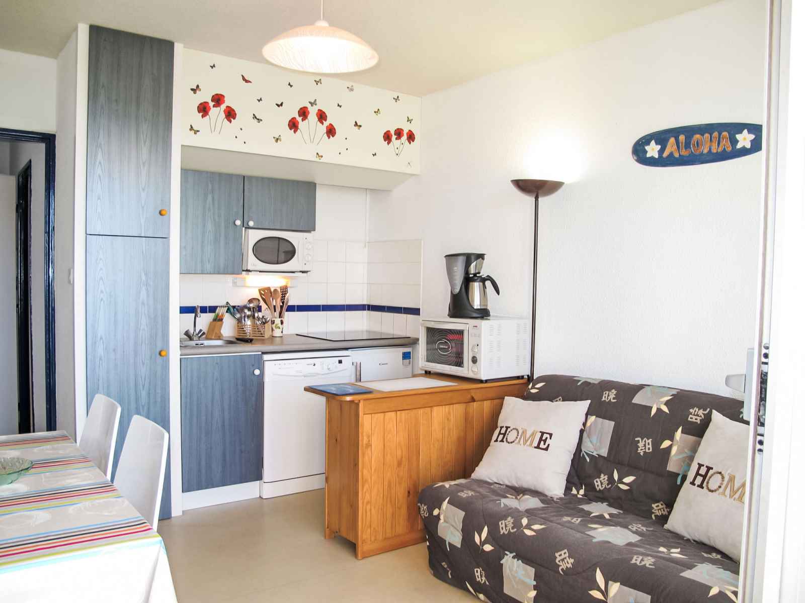 Apt 2 pièces 28 m2 au 1er étage. aménagement fonctionnel et agréable: séjour/salle à manger avec 1 divan-lit double (1 x 140 cm), tv (écran plat). sortie sur le balcon. 1 petite chambre 9 m2 avec 1 grand-lit (1 x 140 cm). coin cuisine (mini-four, lave-vaisselle, 1 plaque vitrocéramiques, 4 feux, grille-pain, bouilloire électrique,