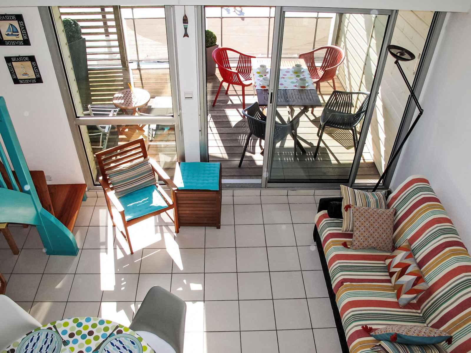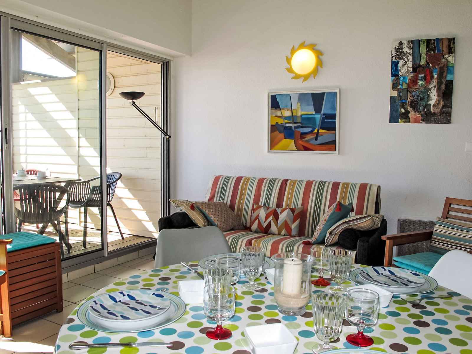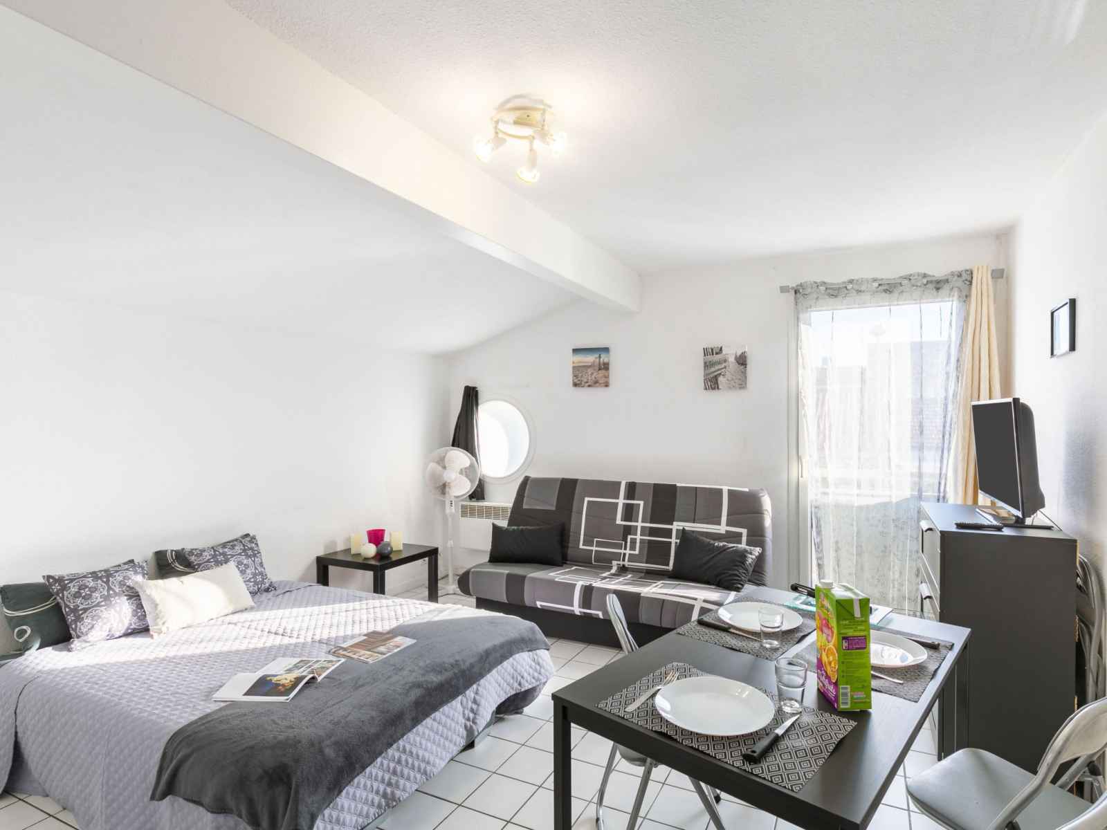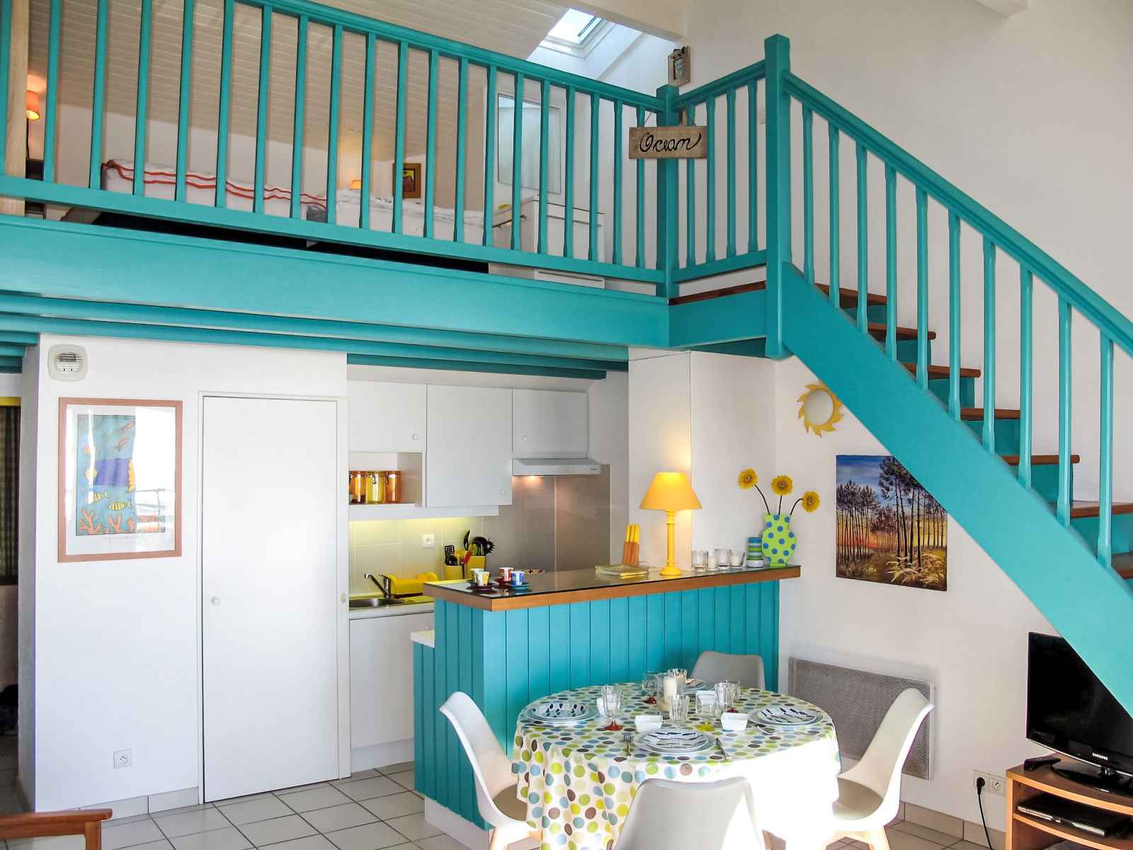 Apt 2 pièces 55 m2 sur 2 niveaux au 3ème étage. aménagement confortable et agréable: séjour/salle à manger avec tv (écran plat), dvd. sortie sur le balcon. 1 chambre avec 1 grand-lit (1 x 140 cm, longueur 190 cm). sortie sur le balcon. coin cuisine (3 plaques à induction, grille-pain, bouilloire électrique, micro-ondes, cafetière
